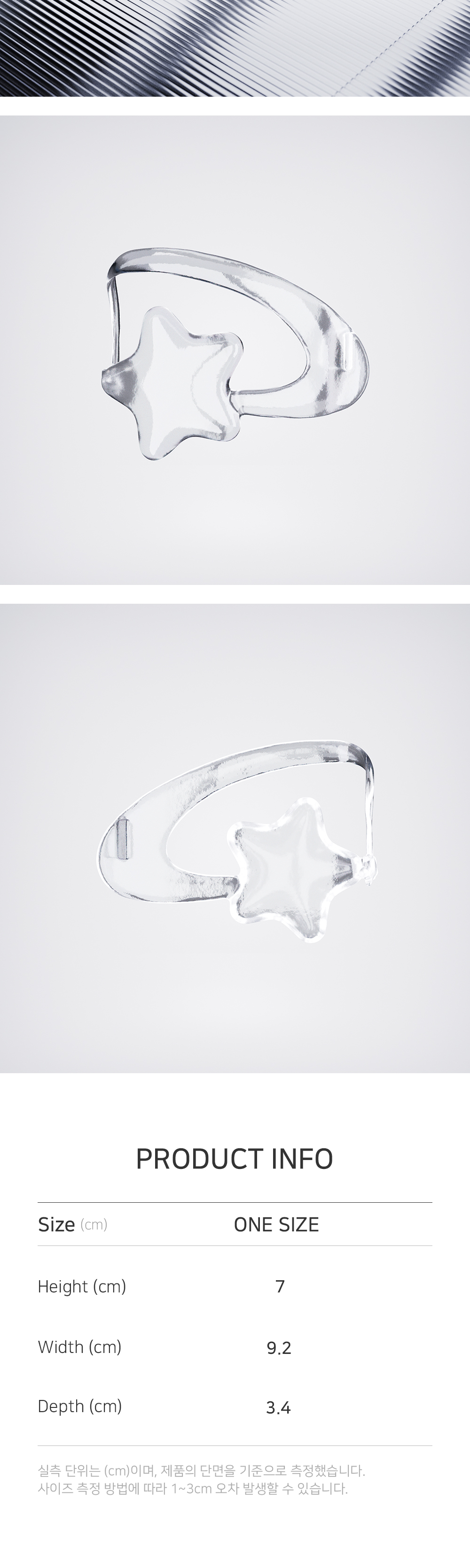 Season .ERA Material - Clear Resin 100% Detail - 페이크 더스트 패키지 / Fake Dust Package - Y2K 스타일의 스타 쉐입 / Star Shapes in Y2K Style - 고투명 소재 / High-Transparent Material * 투명케이스 위 착용 가능한 제품이나, 일부 비규격 투명케이스에 무리하여 착용 시 파손될 위험이 있으니 주의 바랍니다.