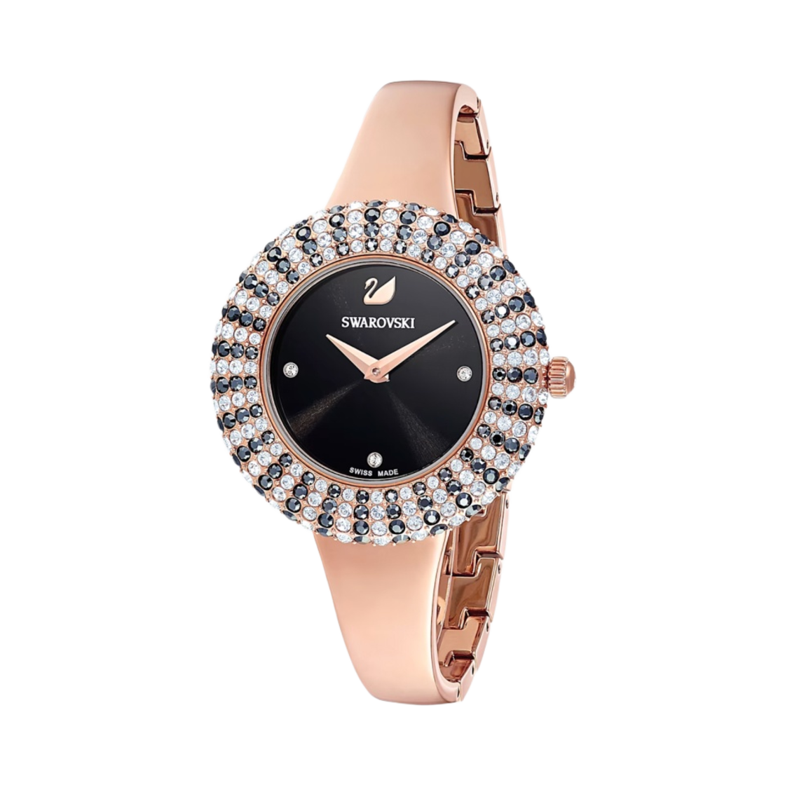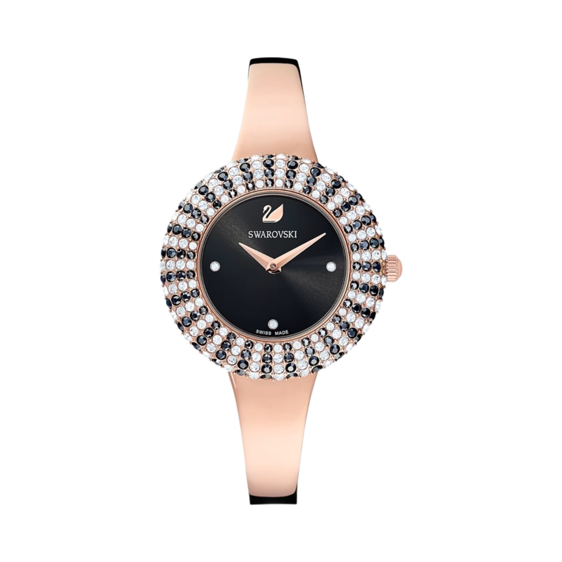 (W) Swarovski Crystal Rose Watch Black Rose Gold