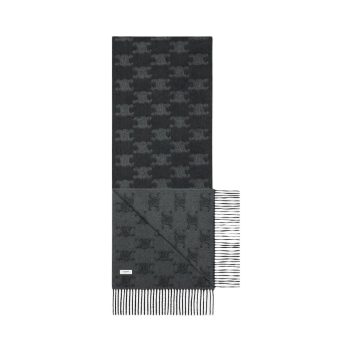 Celine Fringed Muffler in Monogram Cashmere Noir Anthracite