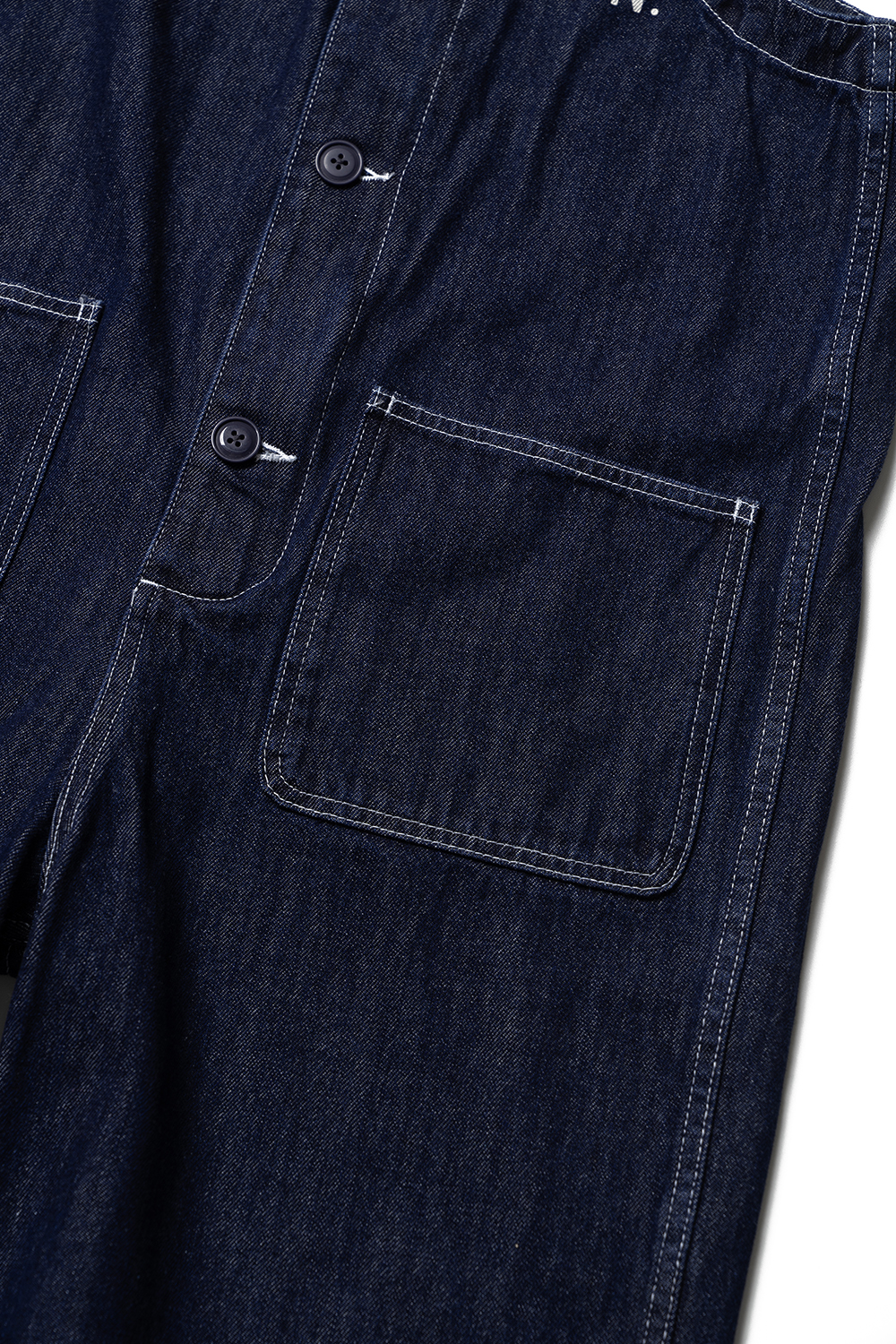 Houston Ladies 23HL004 11oz Slab Denim Deck Pants - Ingido One Wash 'Houston Japan'에서 전개하는 여성용 데님 덱 팬츠입니다. 넉넉한 실루엣으로 편안하게 착용 가능한 아이템입니다. 숄더 벨트는 프론트 부분에서 탈착 가능하며, 프론트는 버튼과 지퍼로 열고 닫을 수 있습니다. 그리고 프론트의 좌측에는 U.S.N 프린트가 디자인되어 있습니다. 전면부의 양측에는 깊은 패치 포켓이 부착되어 있으며, 밑단의 스트랩으로 사이즈 조절이 가능합니다. 힙의 우측에는 버튼이 달린 패치 포켓이 존재하여, 휴대폰 같은 작은 소지품들의 수납에 용이합니다.