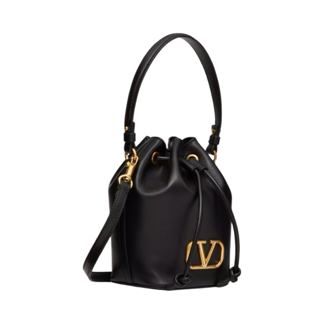 발렌티노 브이로고 시그니쳐 미니 버킷백 나파 레더 블랙