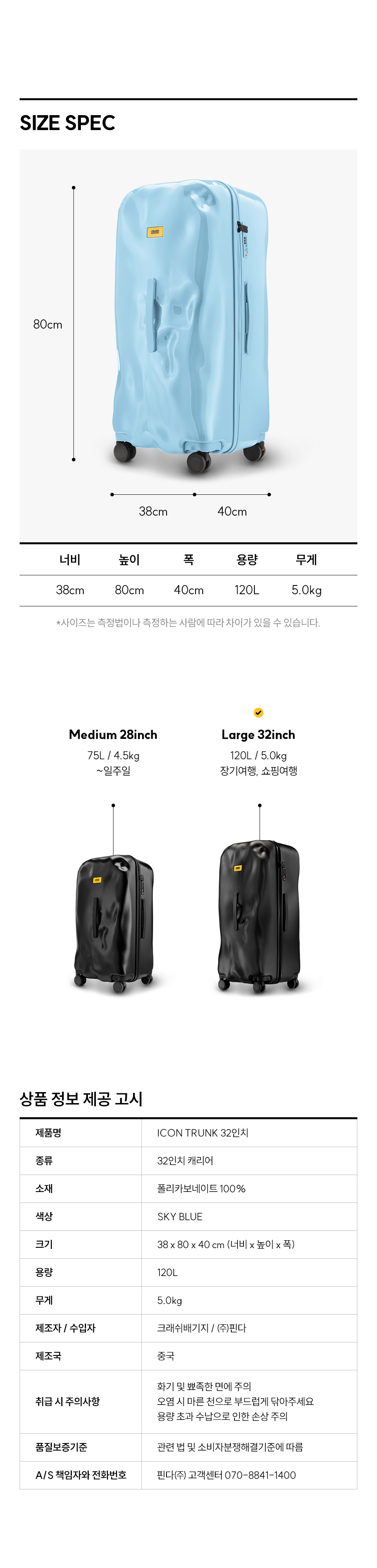 크래쉬배기지 아이콘 트렁크 라지 32인치 캐리어 스카이 블루