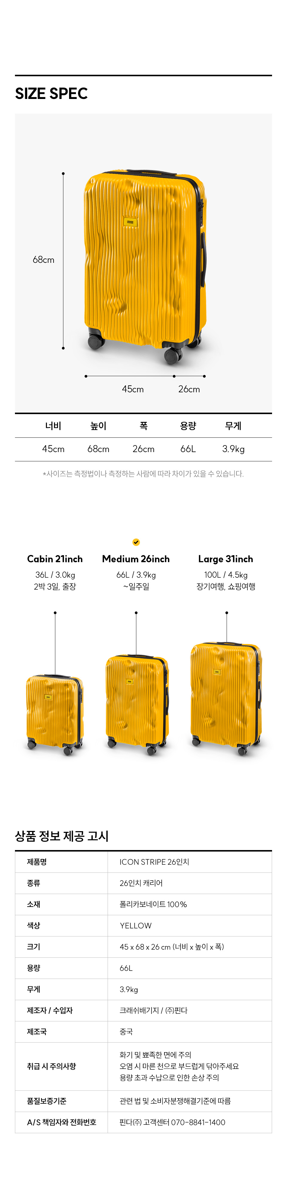 크래쉬배기지 아이콘 스트라이프 26인치 캐리어 옐로우