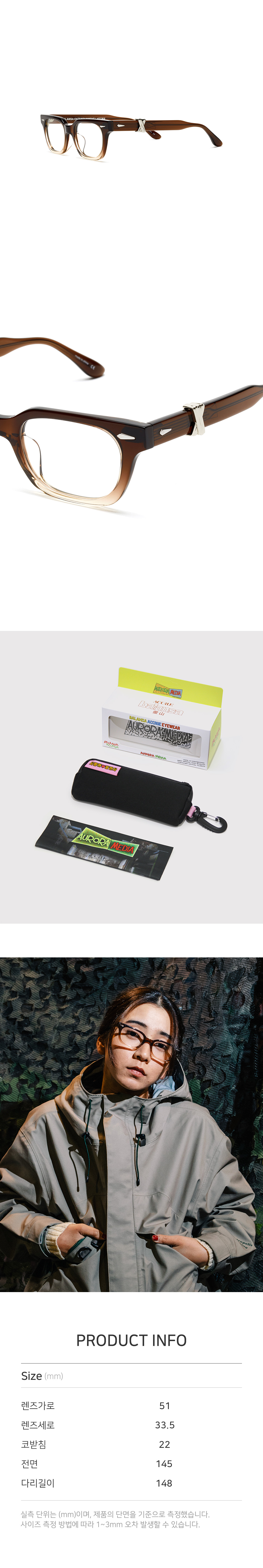 *안경테에 장착되어있는 렌즈는 프레임의 형태의 변형을 막기 위한 플라스틱 데모렌즈입니다.