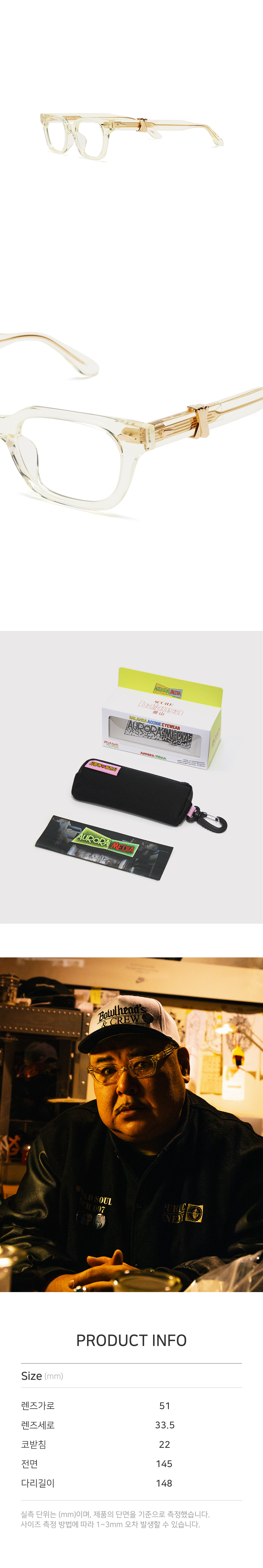*안경테에 장착되어있는 렌즈는 프레임의 형태의 변형을 막기 위한 플라스틱 데모렌즈입니다.