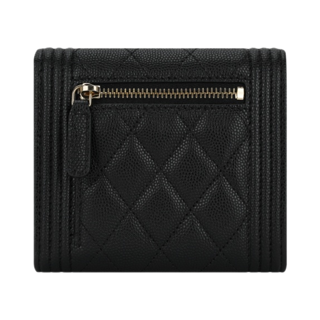 샤넬 보이 샤넬 스몰 플랩 지갑 그레인드 카프스킨 & 골드 메탈 블랙
