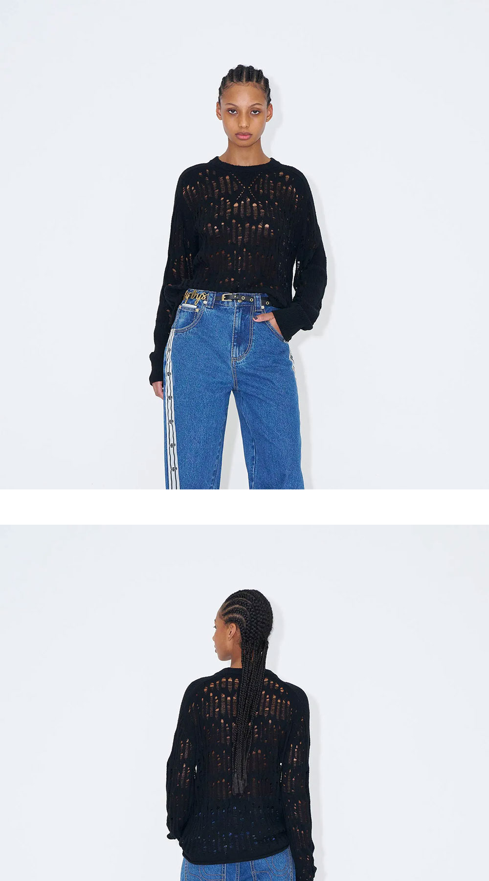 블랙 컬러의 잭슨 스웨터는 드롭 스티치 니트 기법으로 제작되어 독특한 질감과 투명성을 선사합니다. - 여유로운 핏 - 소매 부분에 골지 니트로 스트라이프 처리 - 유니섹스 * 모델 신체 스펙 M: 188cm - 착용 사이즈 L / W: 173cm - 착용 사이즈 S