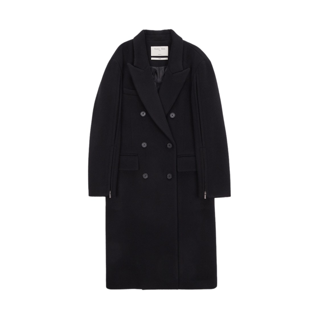 (W) 마뗑킴 테일러드 지퍼 더블 코트 블랙