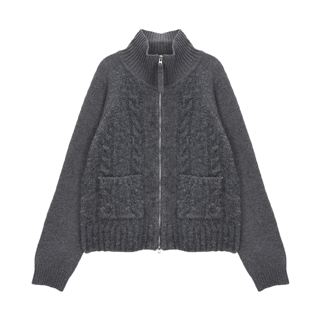 (W) Matin Kim Spell Point Cable Knit Zip Up Charcoal