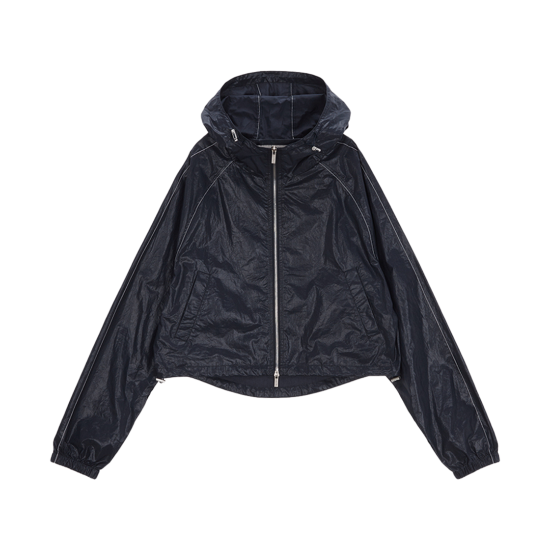 (W) 마뗑킴 마뗑 크롭 후디 코팅 점퍼 네이비