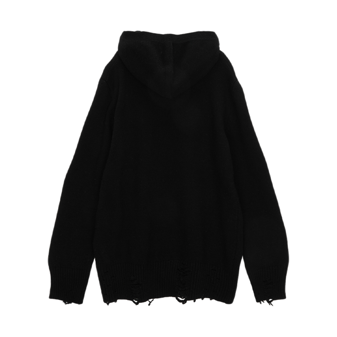 (W) 마뗑킴 데미지 로고 니트 후드 블랙