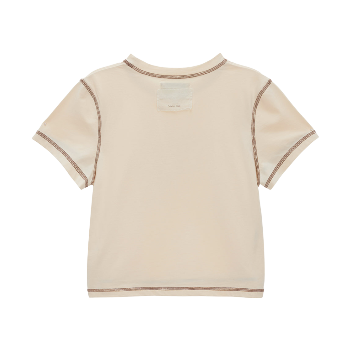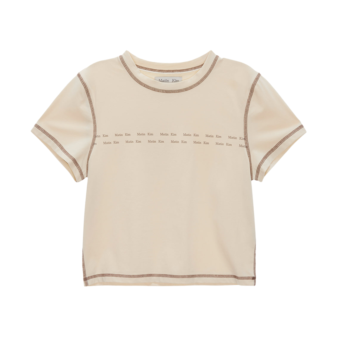 (W) Matin Kim Double Line Logo Stitch Crop Top Ivory
