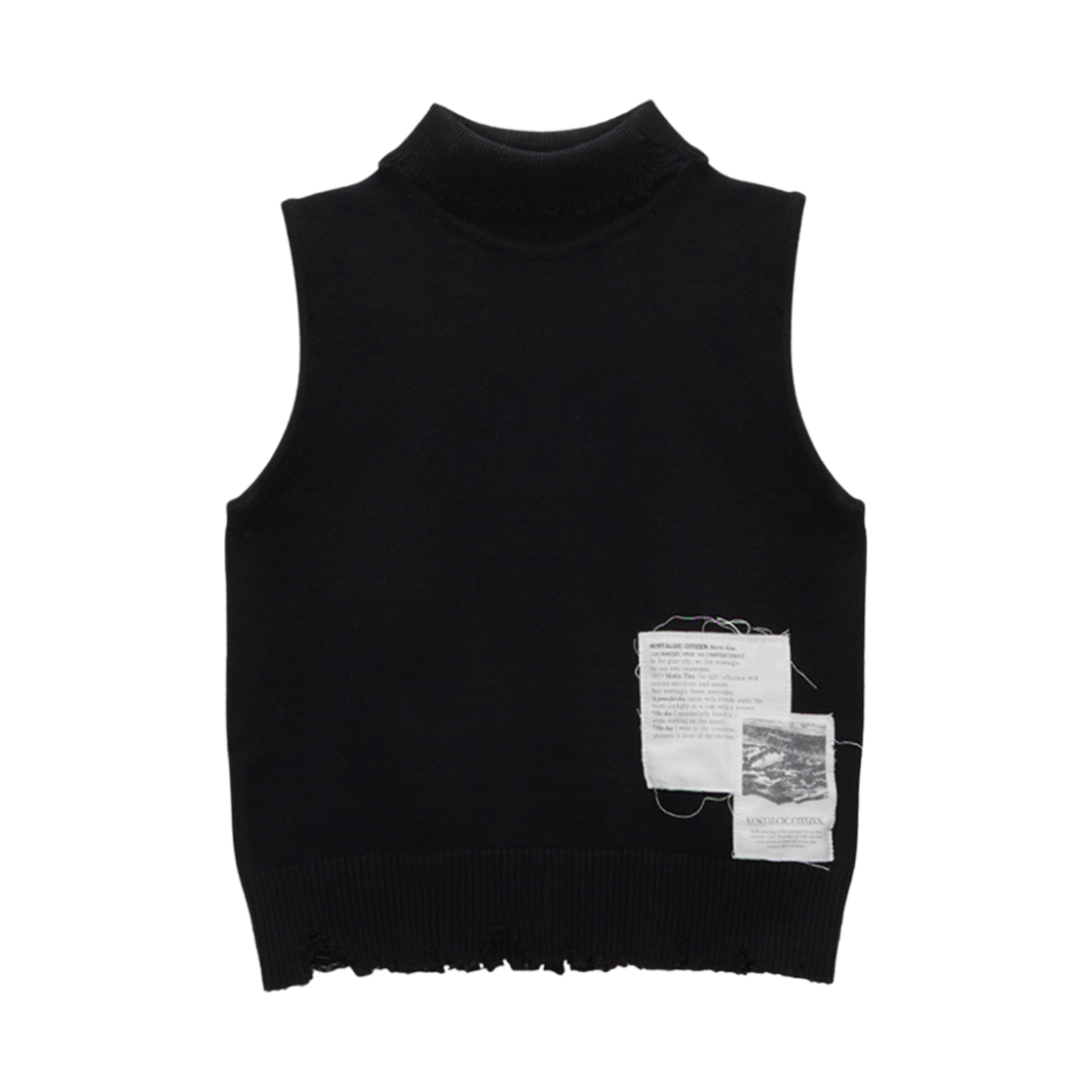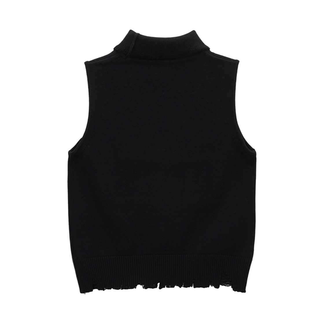(W) Matin Kim Damage Sleeveless Turtle Neck Knit Top Black