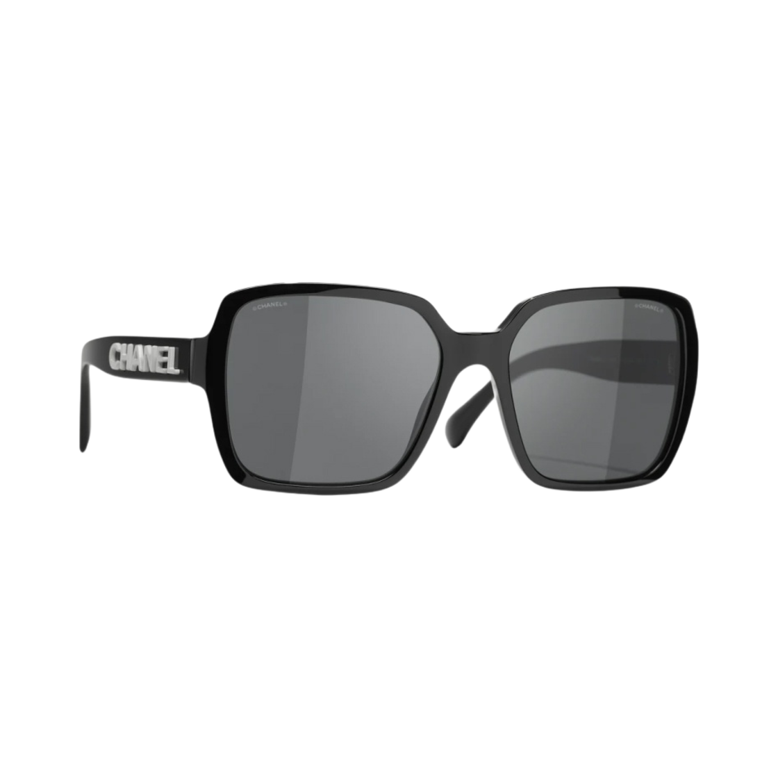 샤넬 스퀘어 선글라스 아세테이트 & 블랙 프레임 그레이 렌즈 인터내셔널 핏
