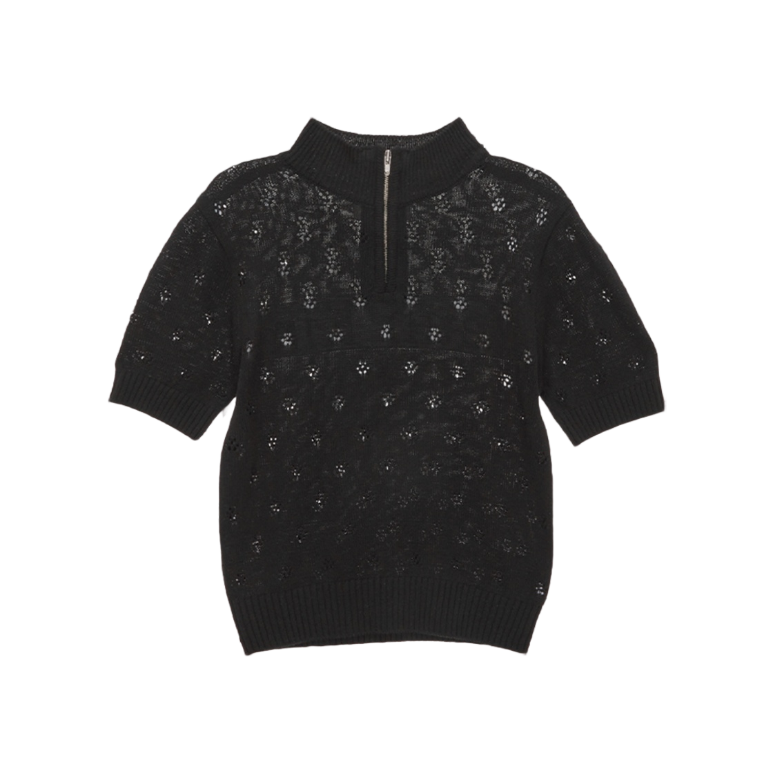 (W) 마뗑킴 크로쉐 하프 집 업 니트 탑 블랙