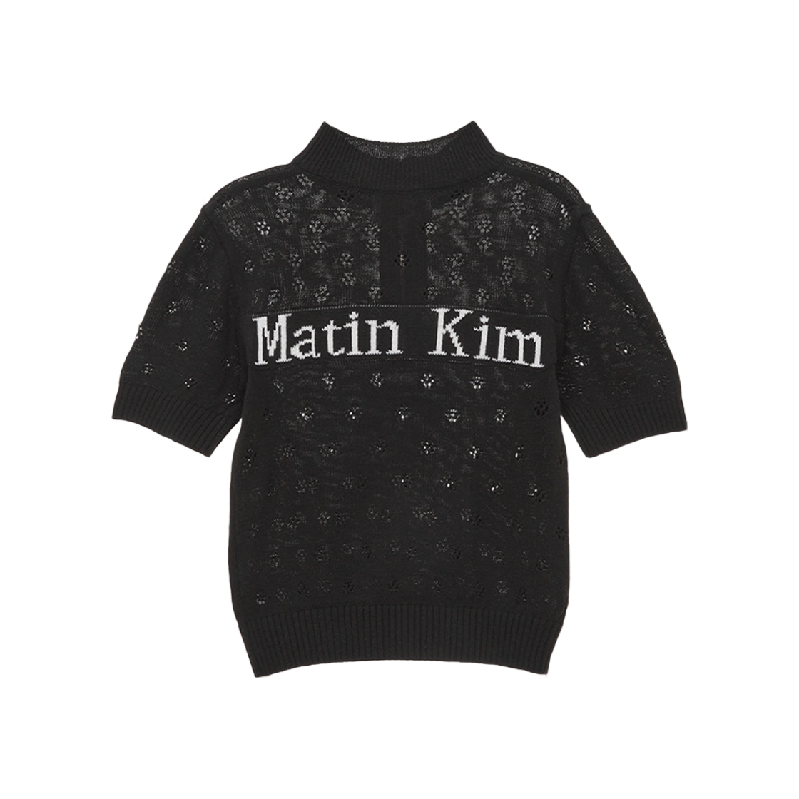 (W) Matin Kim Crochet Half Zip Up Knit Top Black