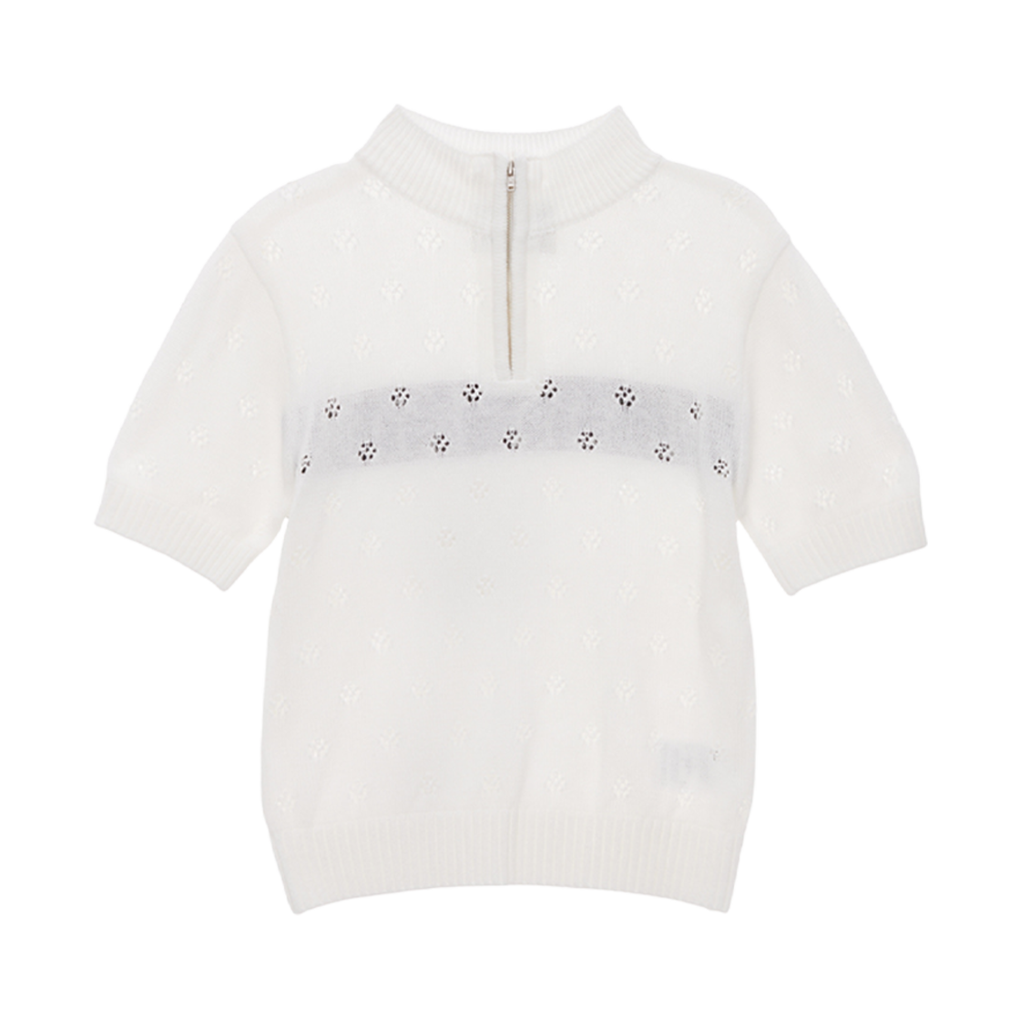 (W) 마뗑킴 크로쉐 하프 집 업 니트 탑 아이보리