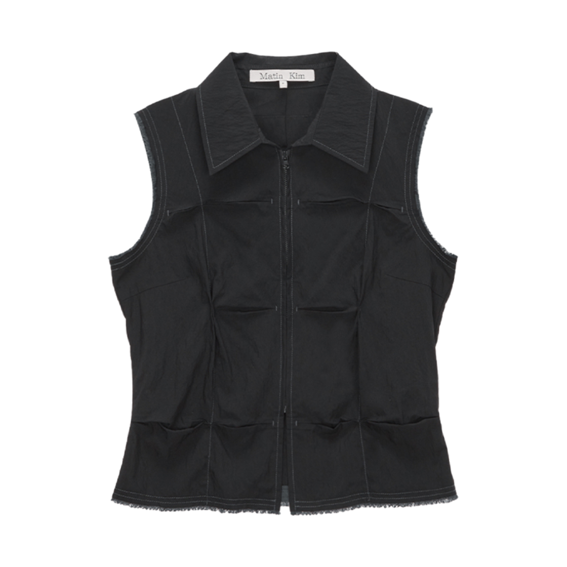 (W) Matin Kim Hybrid Tuck Sleeveless Shirt Black