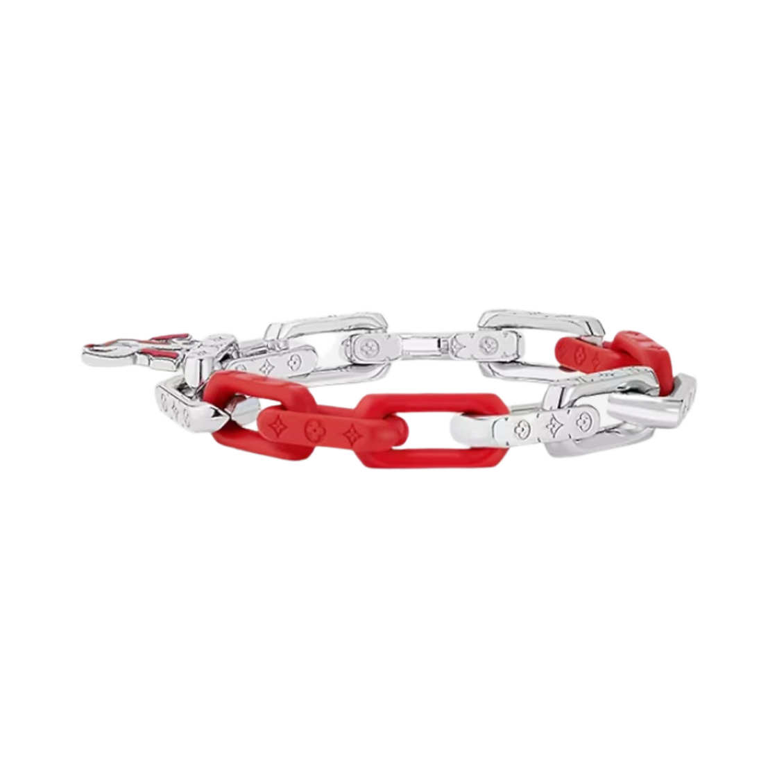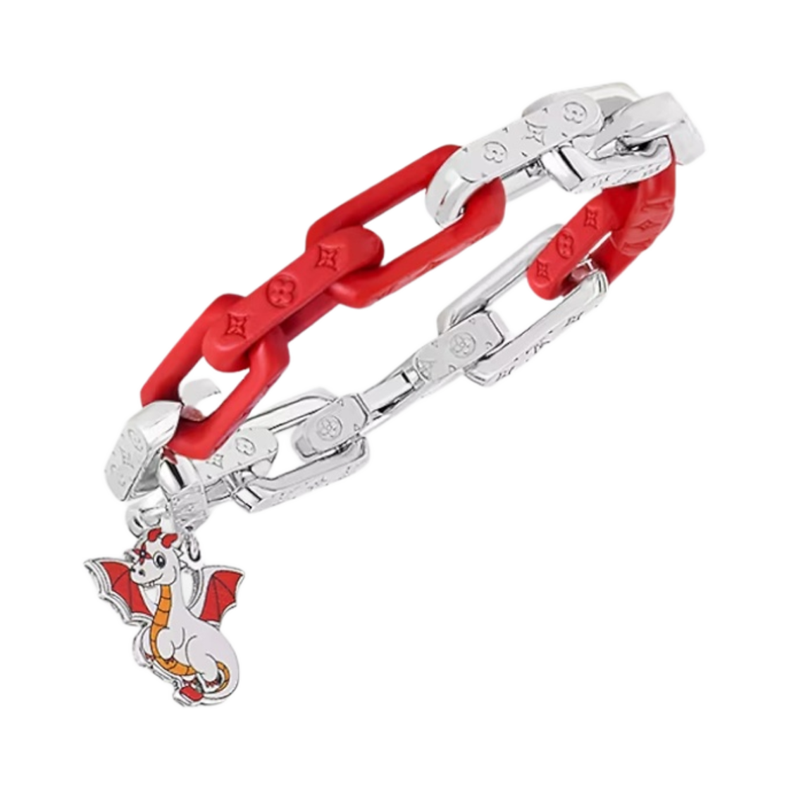 Louis Vuitton Monogram Chain Bracelet with Dragon Charm Silver Red