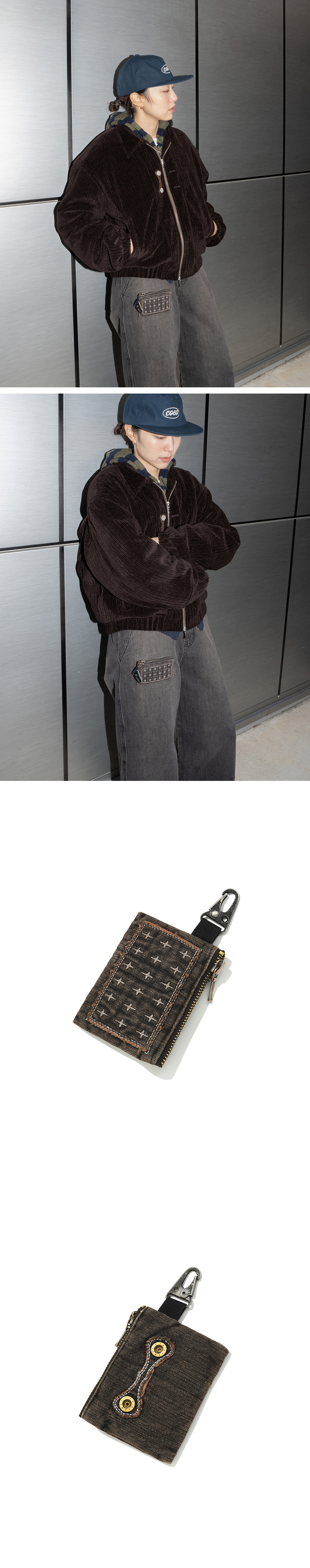 카락터 패치워크 데님 카드 월렛 빈티지 블랙
