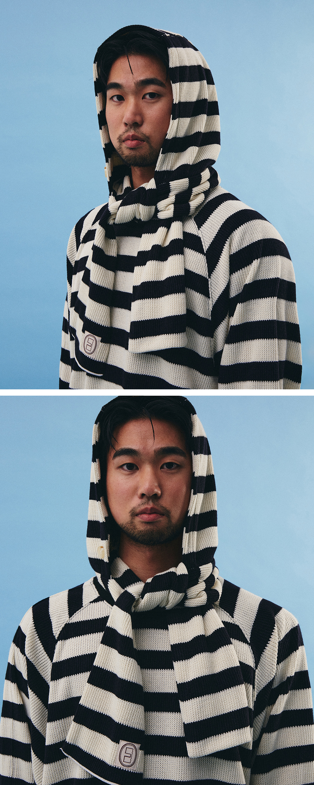 *해당 상품은 예약배송 상품으로 10/28부터 순차적으로 출고됩니다. Product Info. - 언밸런스 스트라이프 니트로 제작 된 바라클라바 - 포근한 터치감과 도톰한 두께감으로 높은 보온성 - 머플러 형태로 제작되어 다양한 연출 가능 - 버튼 포인트로 사이즈 조절 가능 - 머플러 하단 시그니처 직조 라벨 포인트