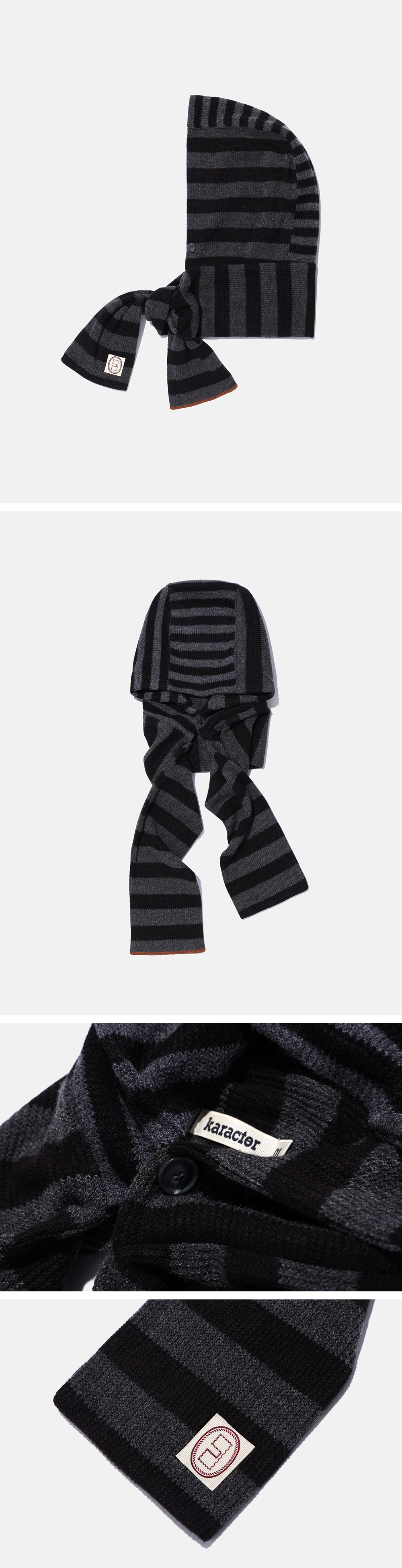 카락터 스트라이프 니트 바라클라바 머플러 블랙 차콜
