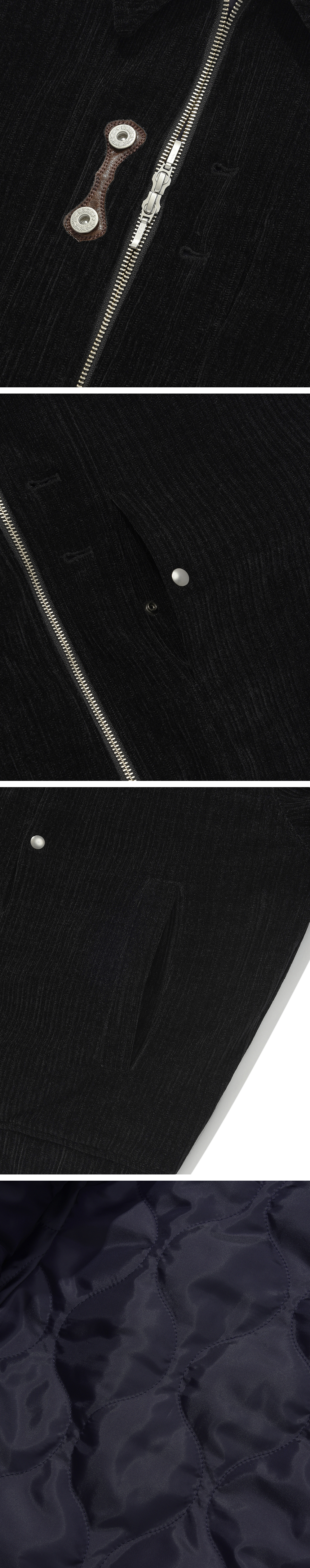 Product Info. - 코듀로이 소재로 제작되어 높은 보온력의 크롭 봄버 자켓 - 오리털 충전재보다 약 1.5배의 보온성을 지닌 3M Thinsulate 2.9oz 충전재 사용 - 전면 YKK 2-WAY ZIPPER, YKK Button 포인트로 다양한 연출 가능 - 웨스턴 무드의 가죽 패치워크 자수, 전면 히든 포켓 포인트 - 후면 더블 플리츠, 입체 구조의 소매 절개로 편안한 착용감