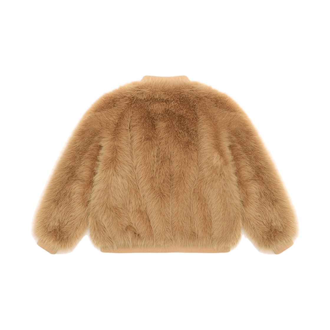 (W) SMFK Wildworld Baseball Faux Fur Jacket Wheat
