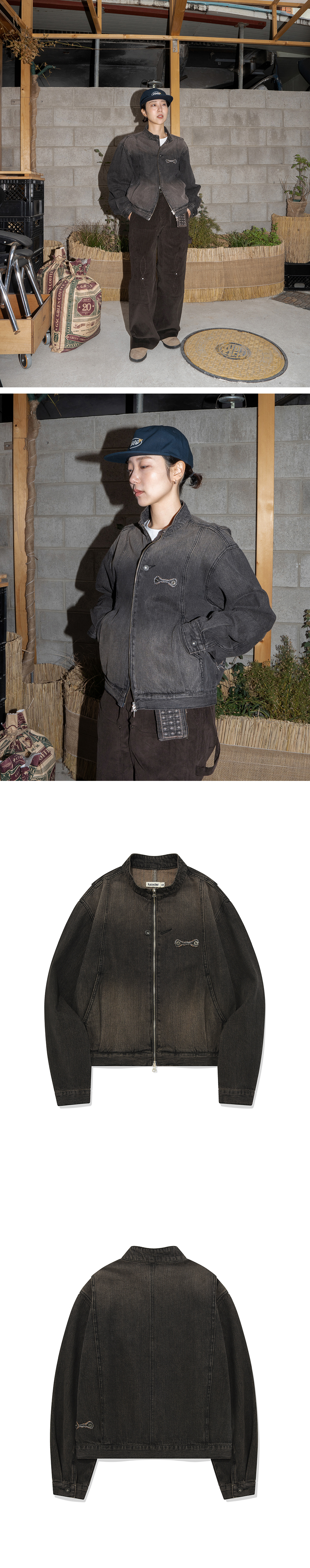 카락터 월렛 데님 자켓 빈티지 블랙 (카드 월렛 미포함)
