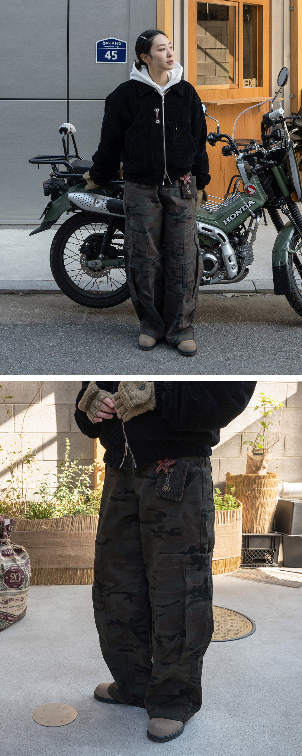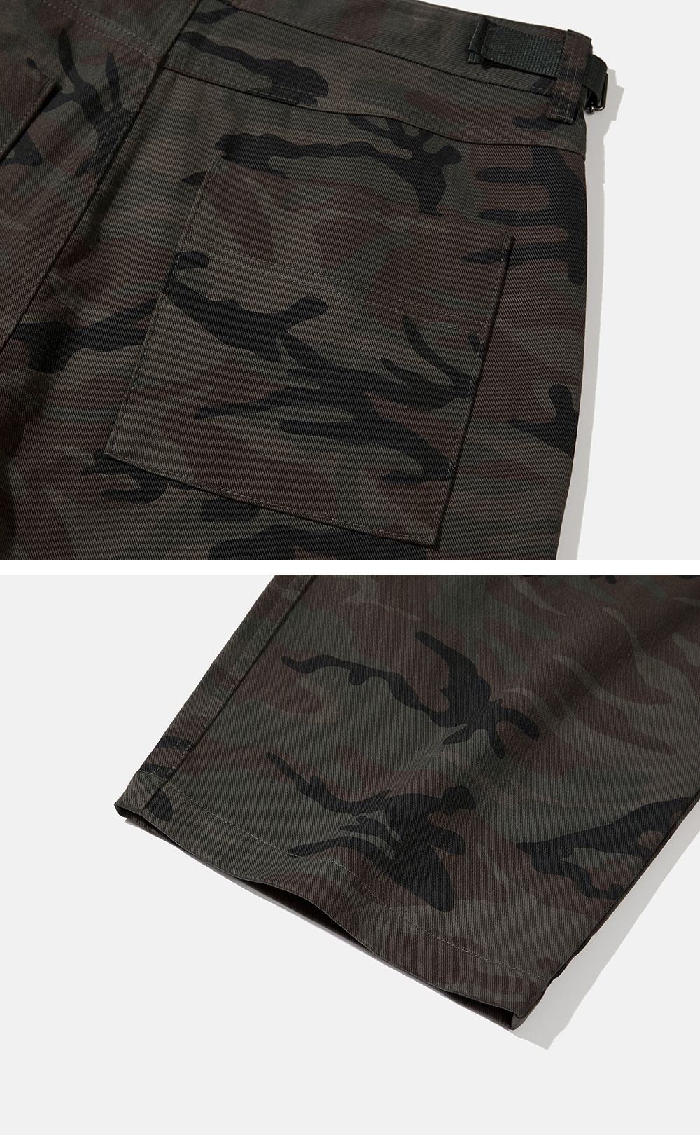 Product Info. - 탄탄한 두께감의 COTTON 100% 트윌 원단 - 커브형으로 떨어지는 와이드 핏 - 전면 입체 코인 포켓, 열쇠고리 포인트 - 양쪽 사이드 히든 벨크로 테이프로 개폐 가능한 빅 카고 포켓 - 허리 사이즈 조절 가능한 양 사이드 어드저스터 디테일