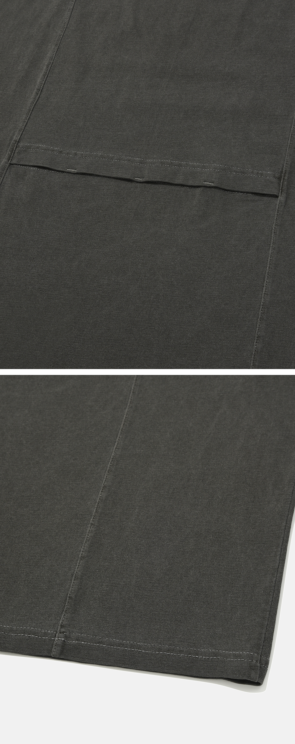 스튜디오 촬영 환경 및 모니터 해상도에 따라 제품 이미지와 실제 제품 간의 컬러 및 원단감의 차이가 있을 수 있습니다. 피그먼트 다잉 가공 특성상, 세탁시 이염 발생의 우려가 있으니, 반드시 단독 세탁 또는 드라이클리닝 하십시오.
