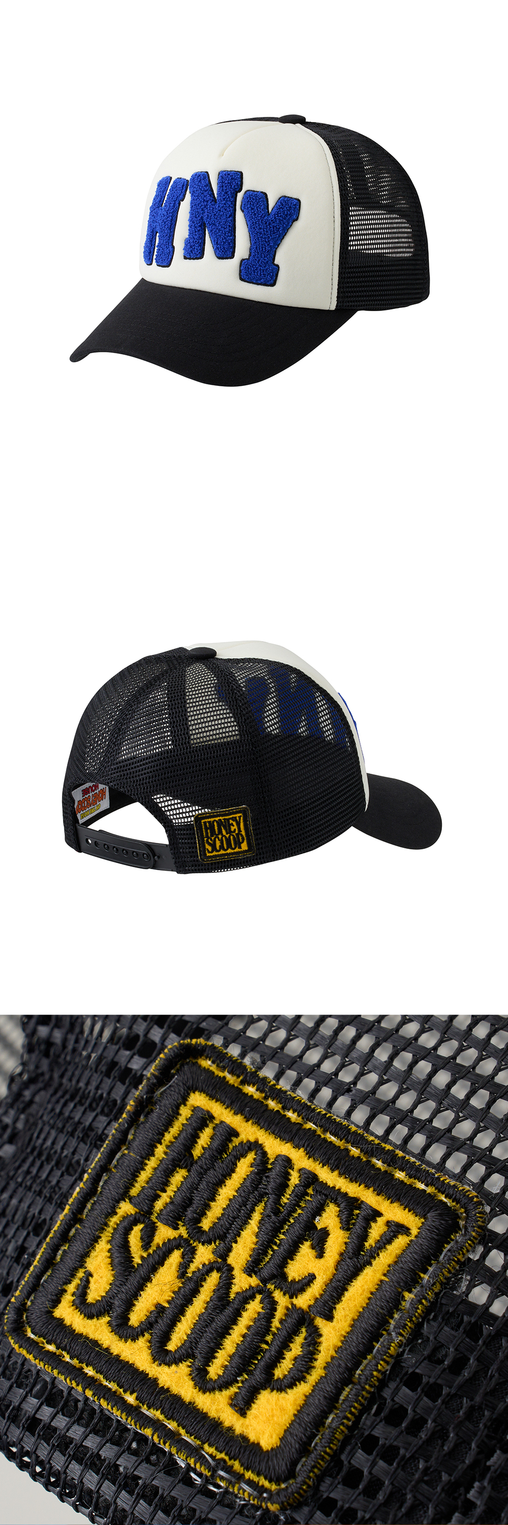 허니스쿱하우스 HNY 로고 트러커 캡 블랙