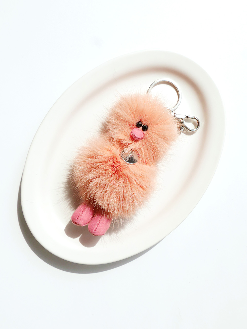 수작업 특성상 제품마다 부리와 눈 위치, 털 길이, 모량 등 각각의 형태 차이가 있습니다. 부리와 눈을 직선으로 고정하기 위한 수작업 공정 특성상, 부리, 눈 주변에 본드 자국이 보일 수 있습니다.