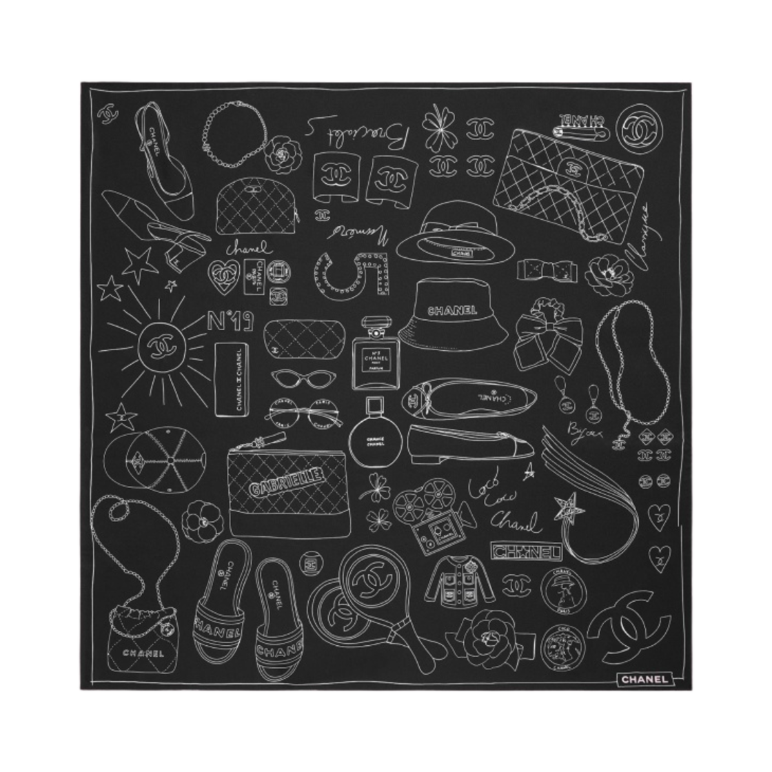 (W) 샤넬 스퀘어 스카프 실크 트윌 & 블랙 라이트 핑크