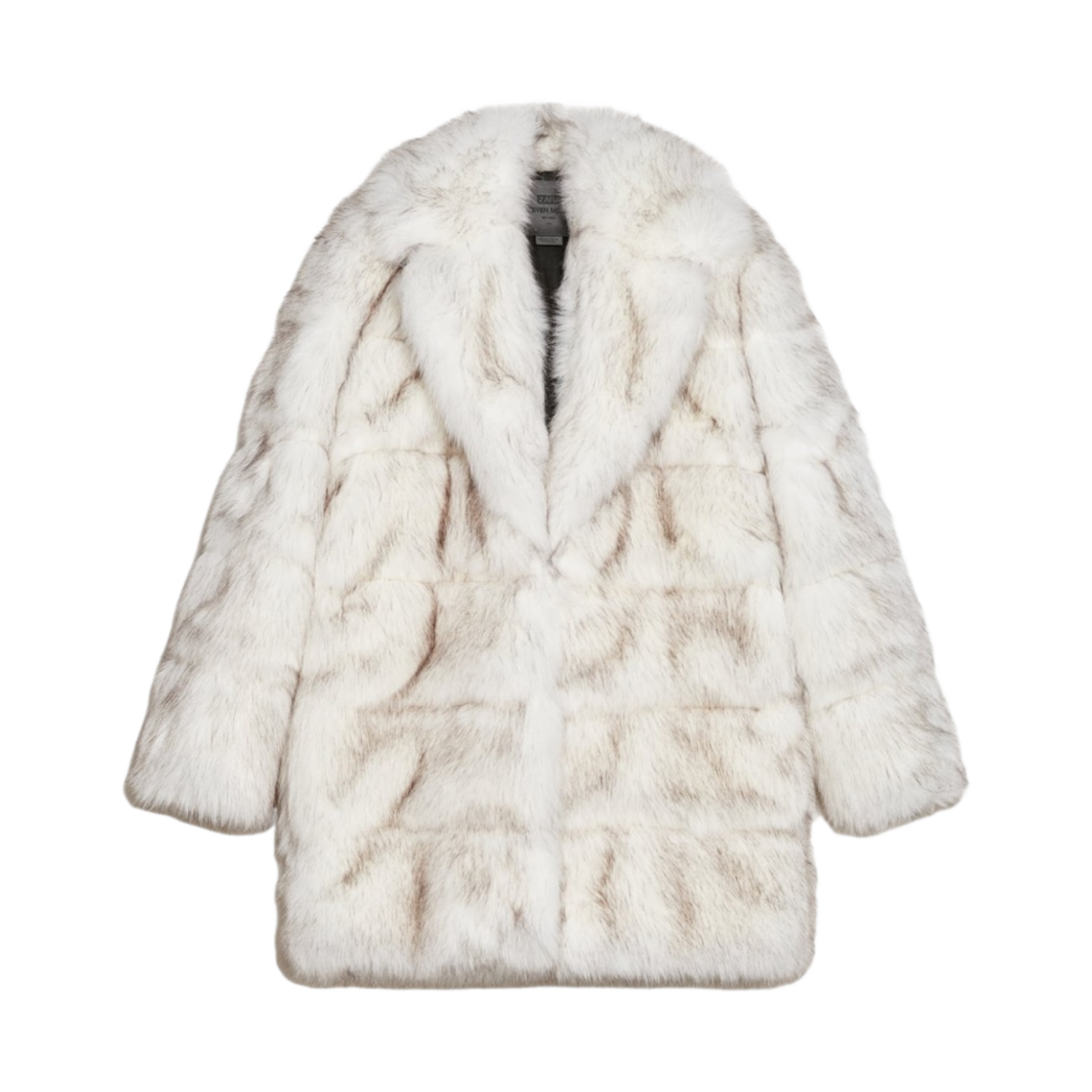 (W) Zara Steven Meisel Fake Fur Coat Light Beige