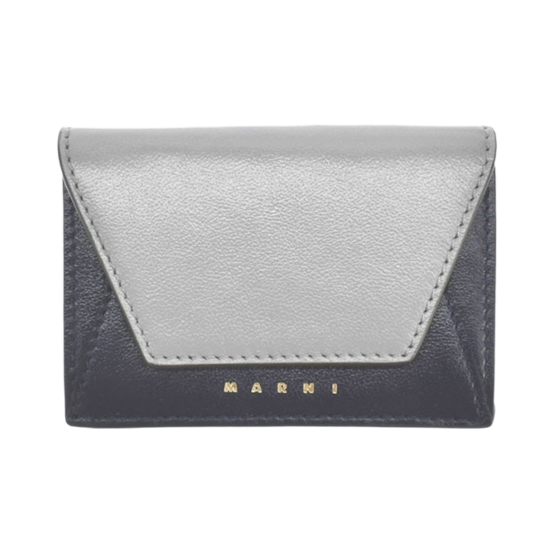 Marni Leather Tri-Fold Wallet Ash Grey Navy Blue