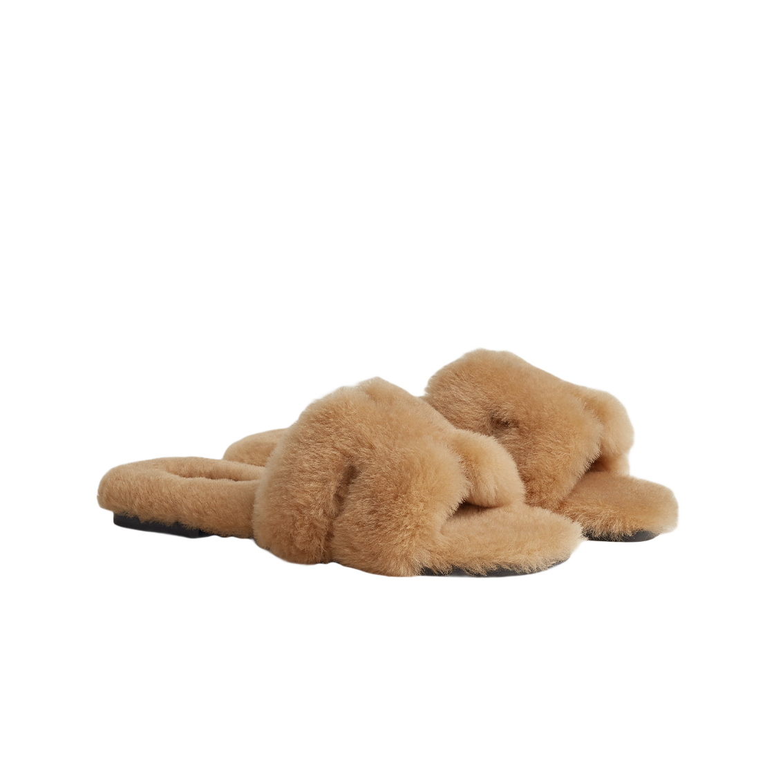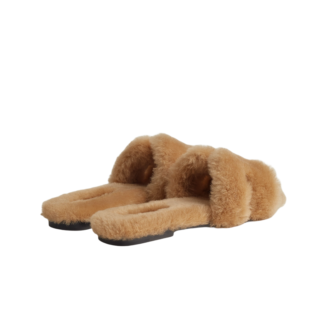 (W) Hermes Oran Sandal Woolskin & Beige Argile