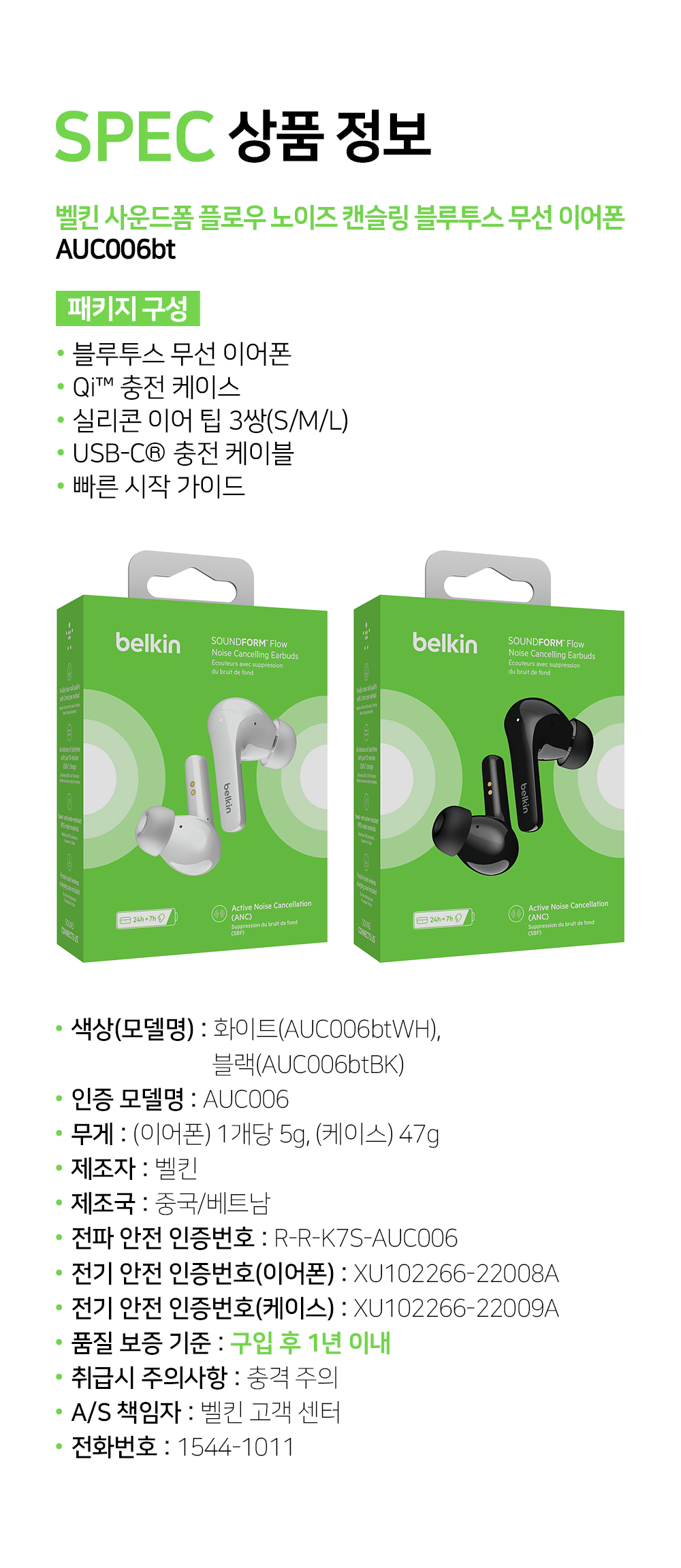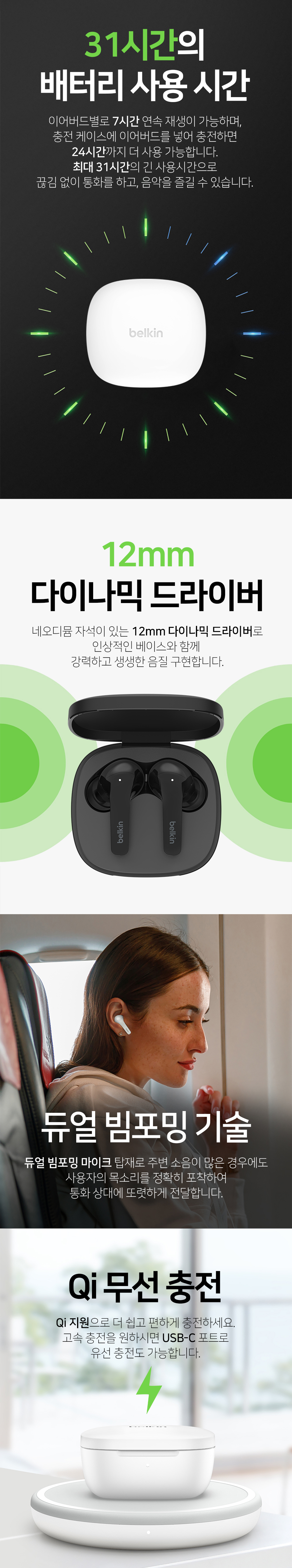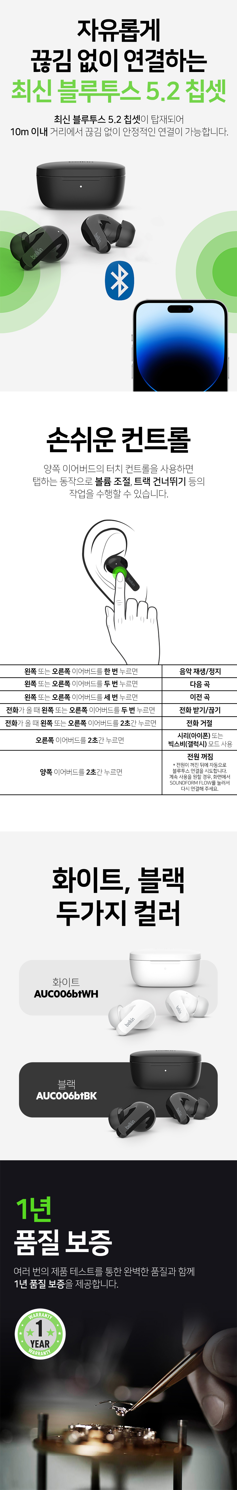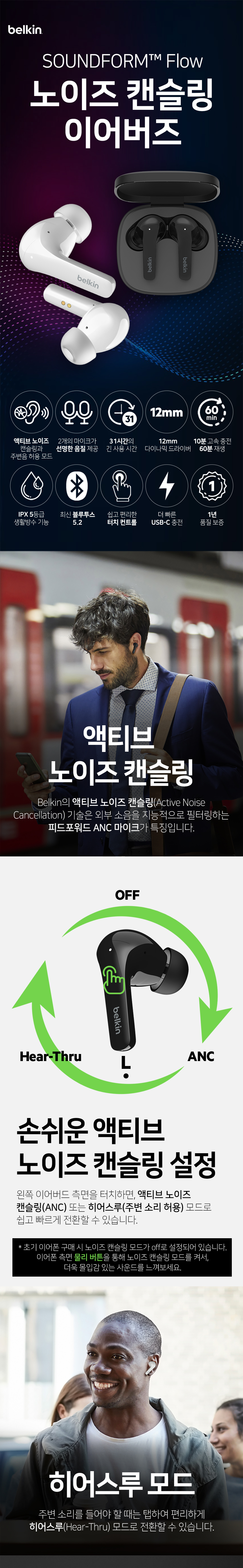 벨킨 사운드폼 플로우 노이즈 캔슬링 블루투스 무선 이어폰 AUC006 블랙