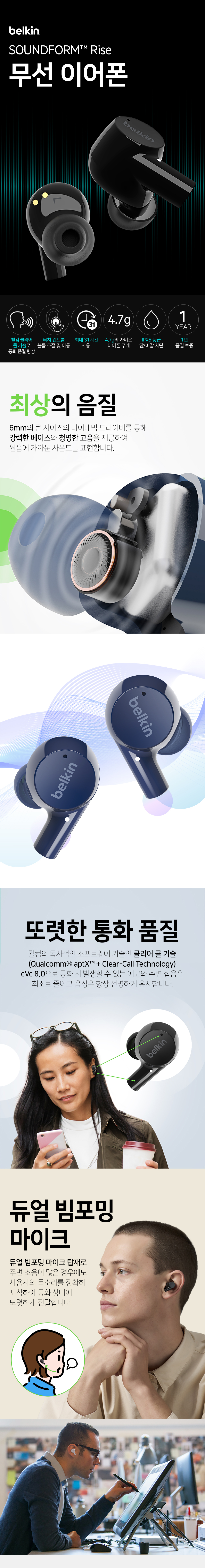 벨킨 사운드폼 라이즈 무선 이어폰 AUC004bt 블랙