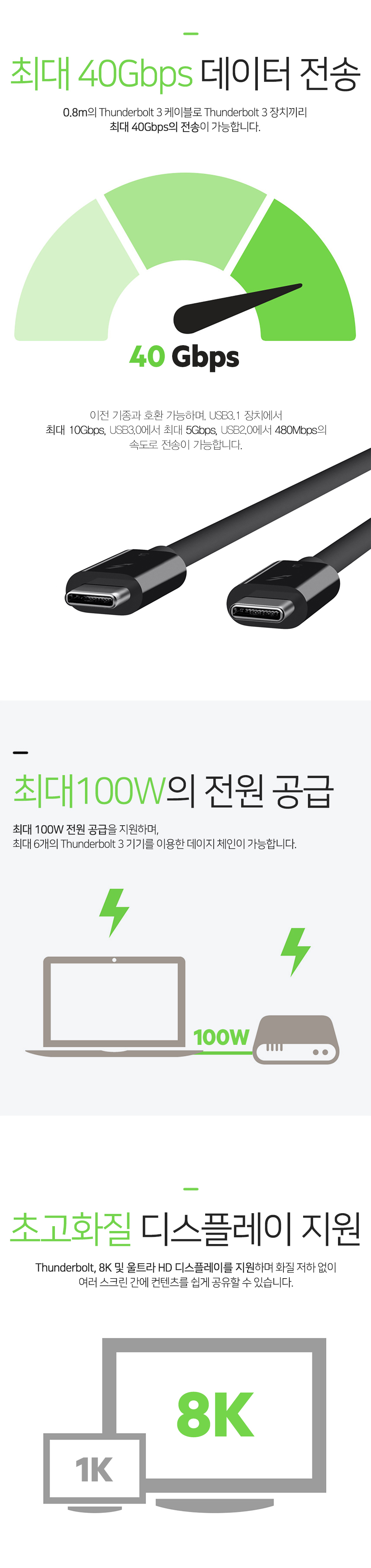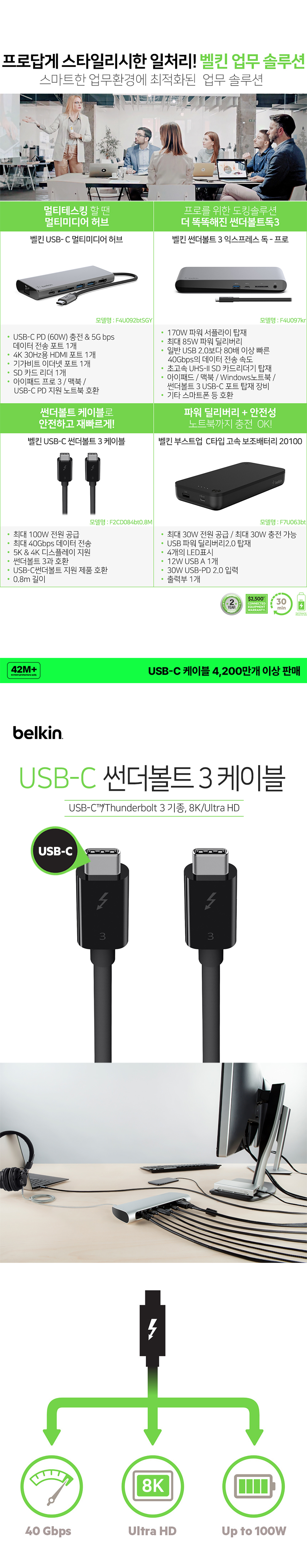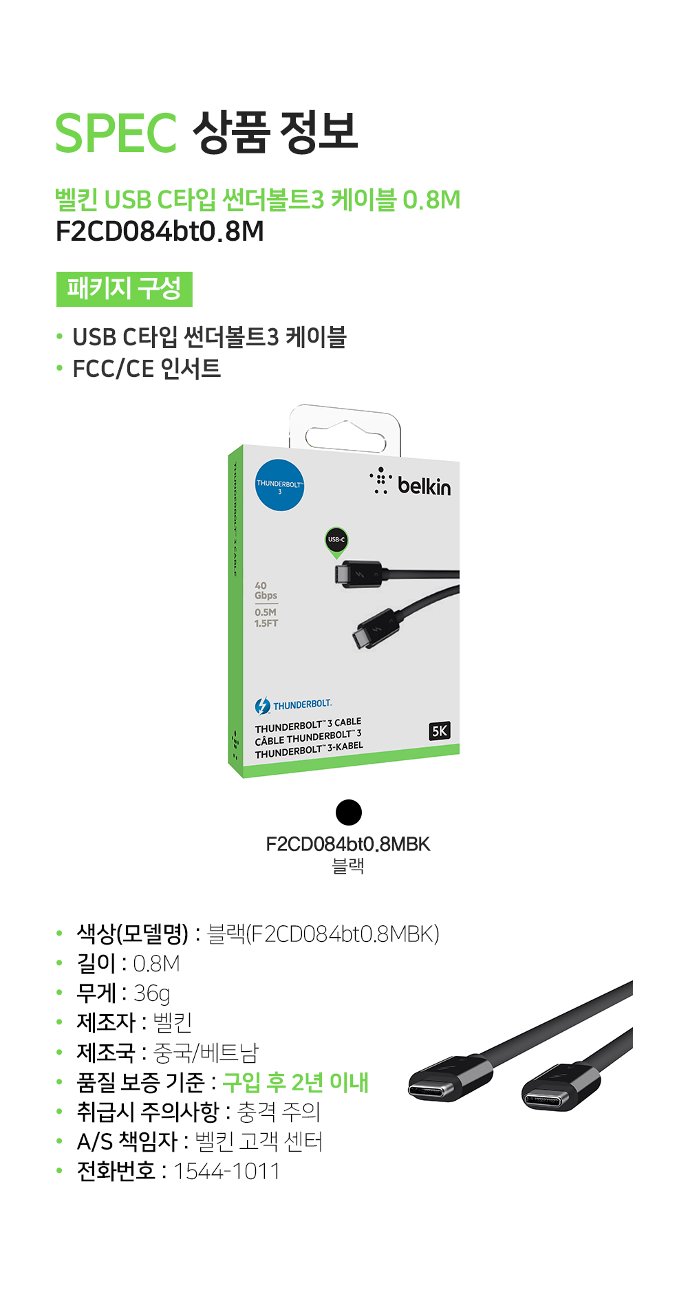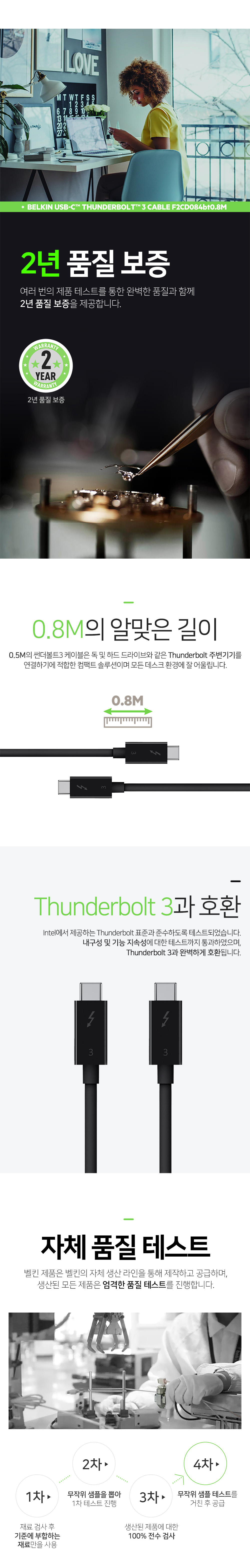 벨킨 USB-C타입 썬더볼트3 케이블 0.8M F2CD084bt