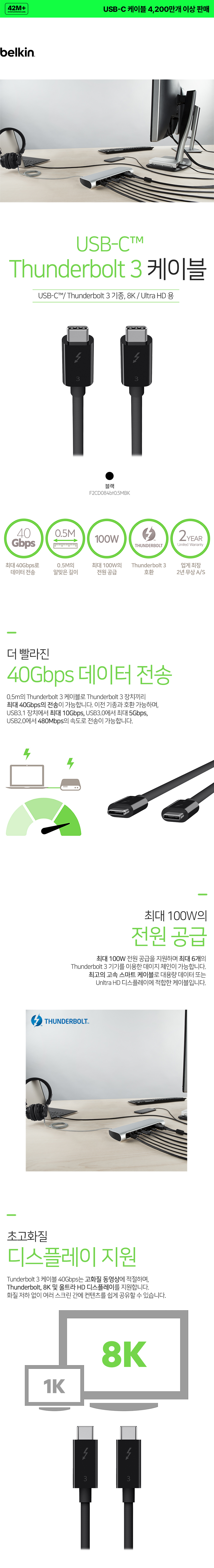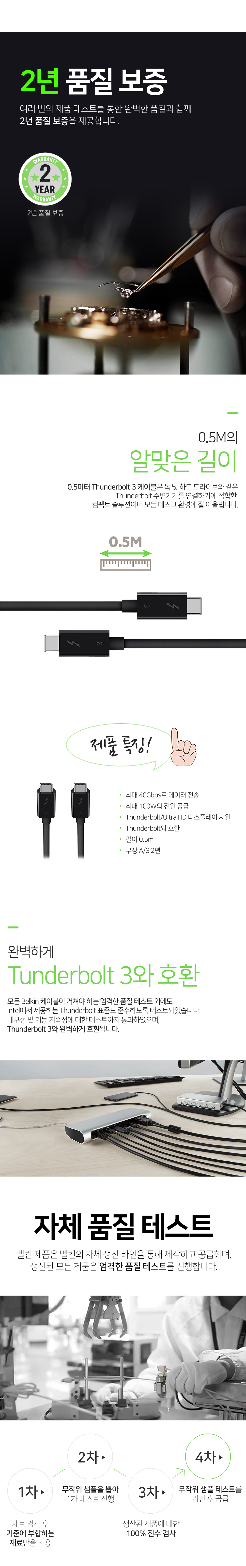 벨킨 USB-C타입 썬더볼트3 케이블 0.5M F2CD084bt