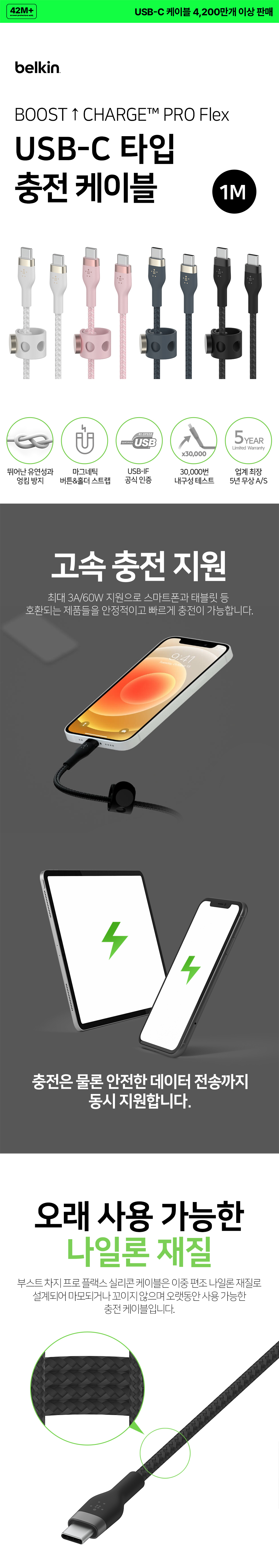 벨킨 프로 플렉스 USB-C to C타입 고속 충전 케이블 1M CAB011bt1M 블루