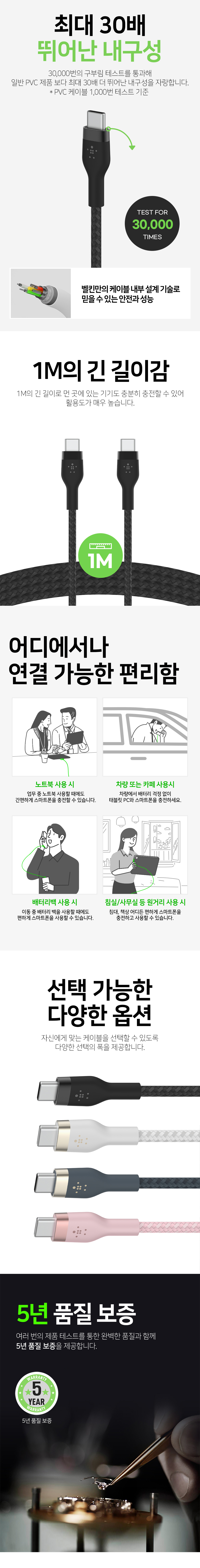 벨킨 프로 플렉스 USB-C to C타입 고속 충전 케이블 1M CAB011bt1M 블랙