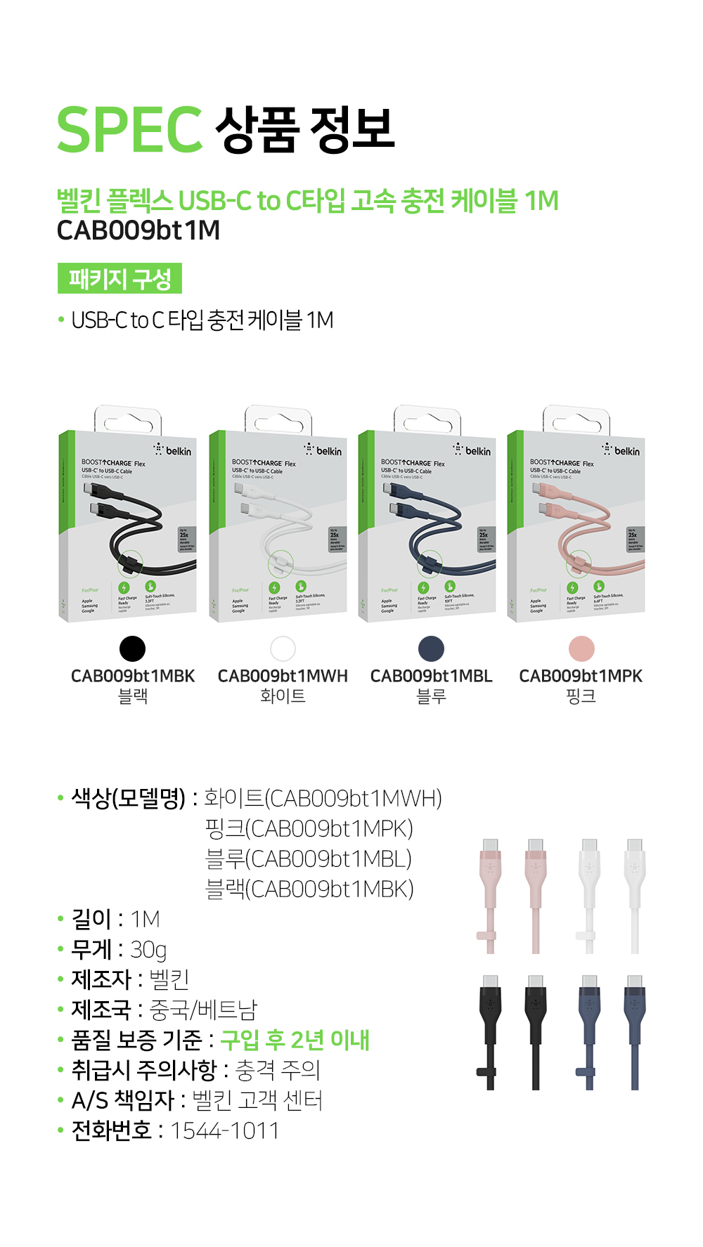 벨킨 플렉스 USB-C to C타입 고속 충전 케이블 1M CAB009bt1M 블랙