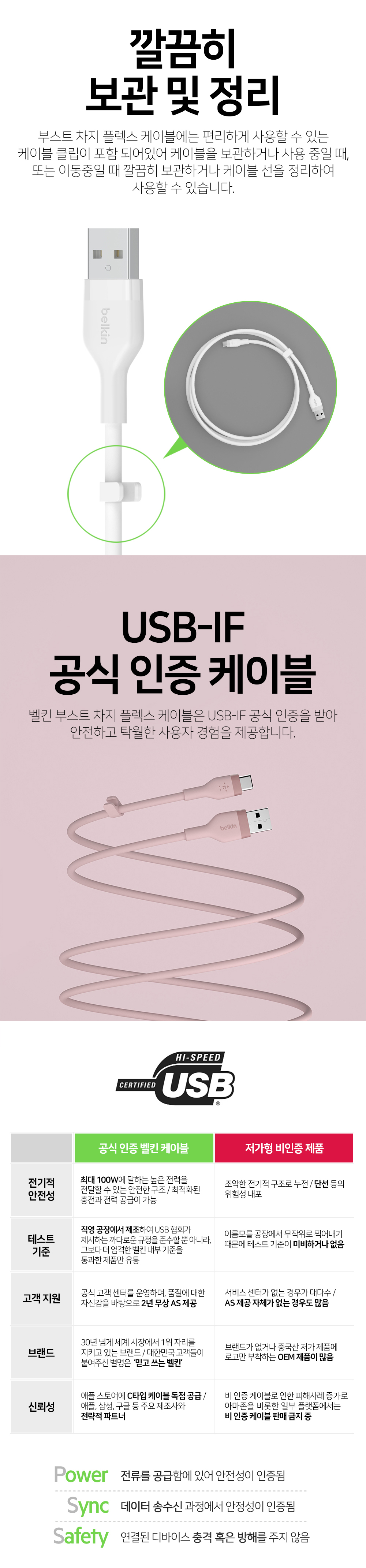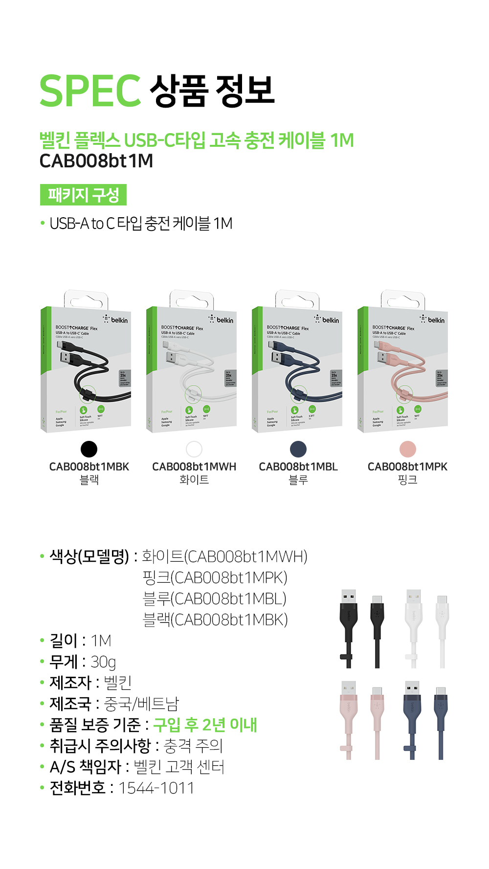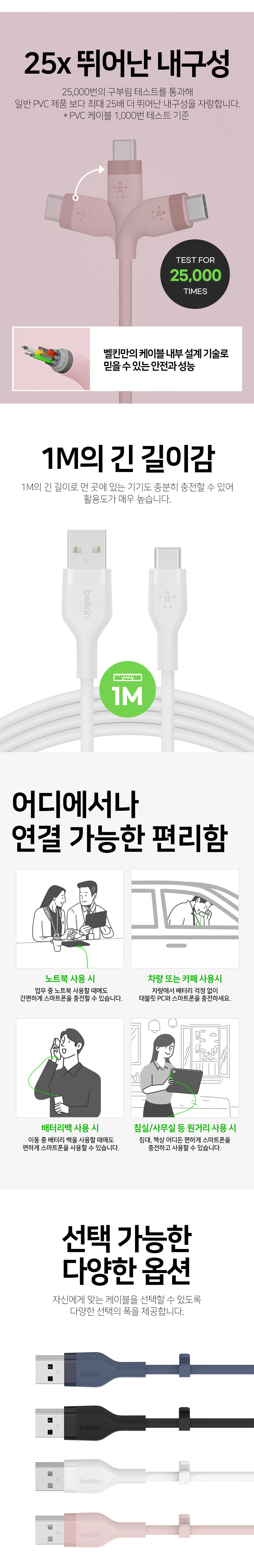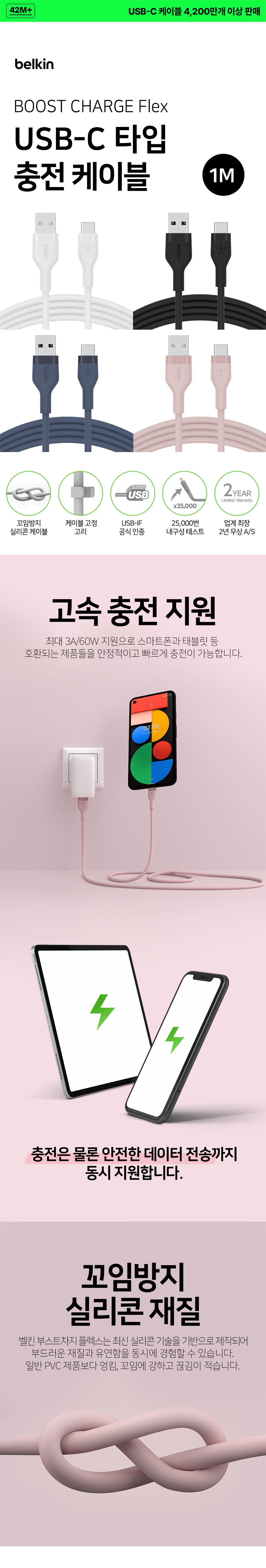 벨킨 플렉스 USB-A to C타입 고속 충전 케이블 1M CAB008bt1M 블랙