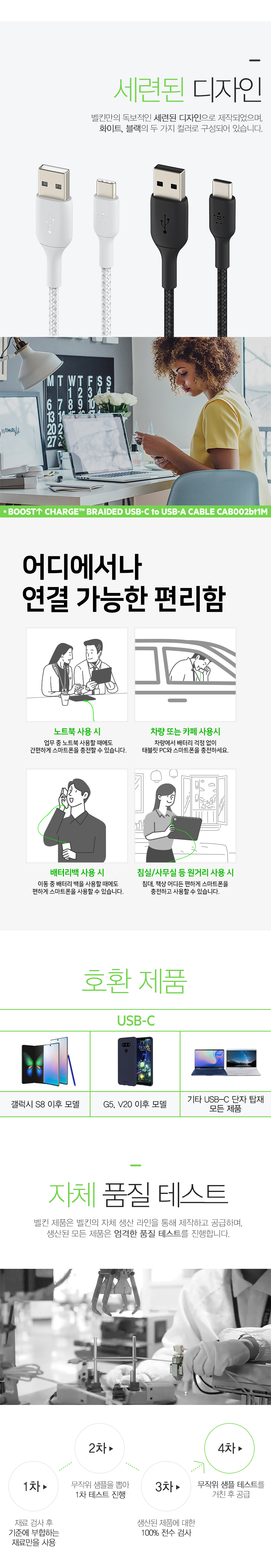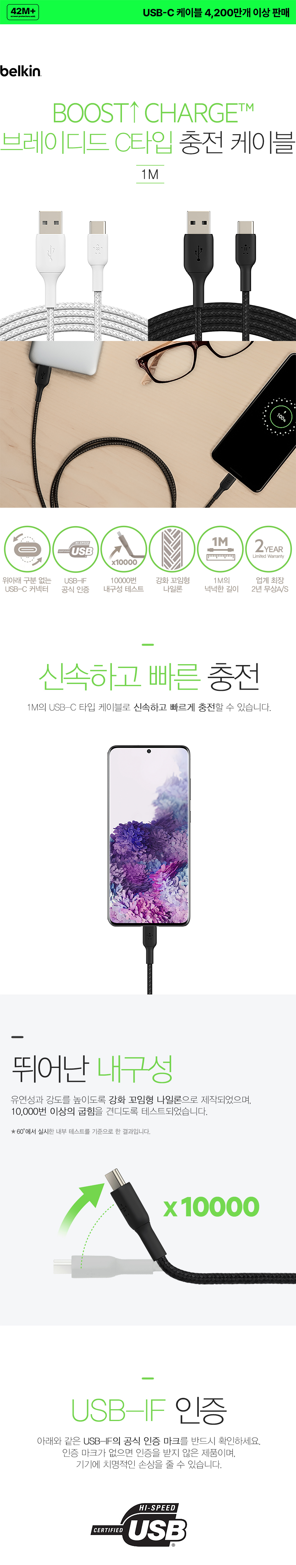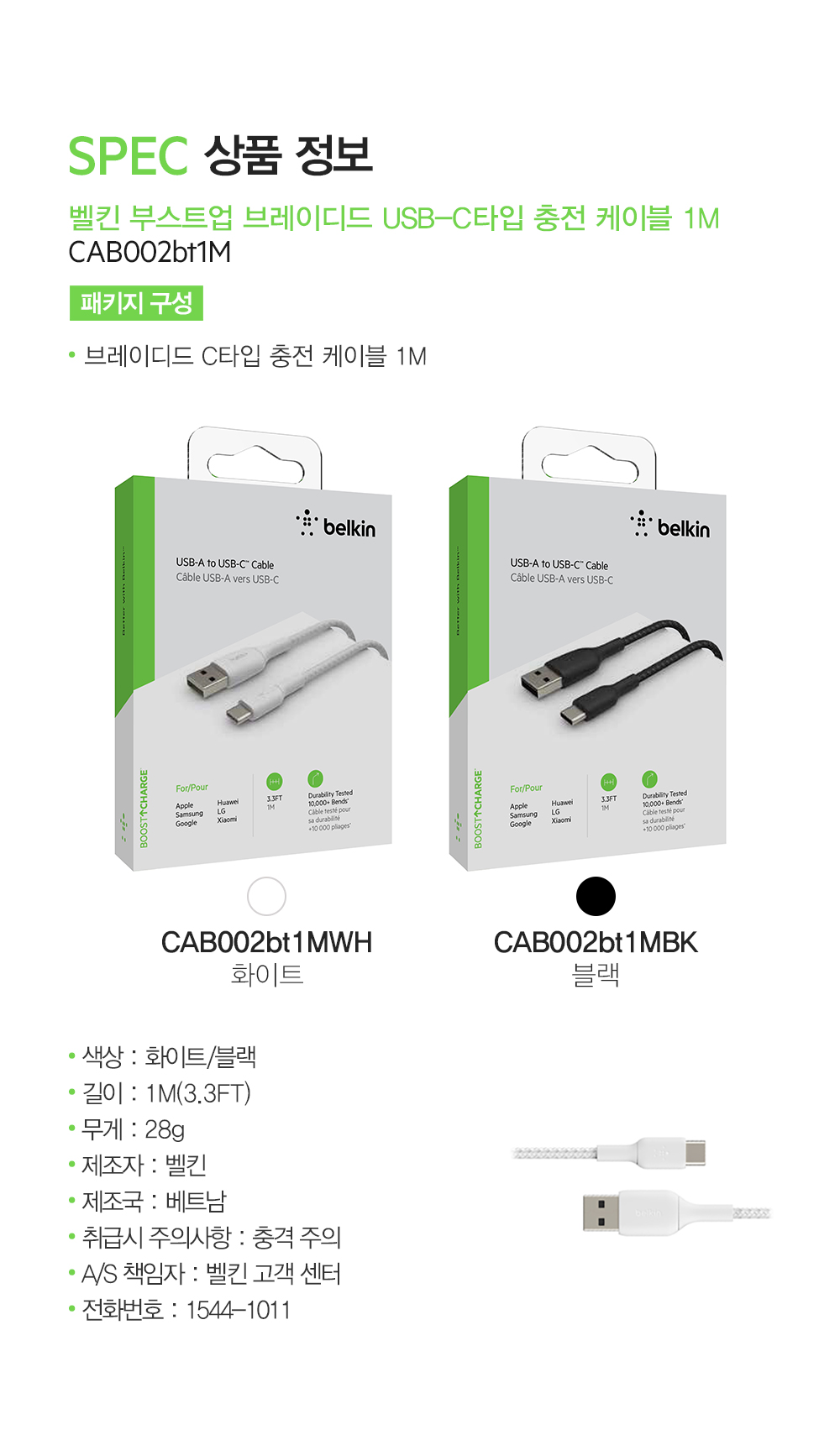 벨킨 부스트업 브레이디드 USB-A to C타입 충전 케이블 1M CAB002bt1M 블랙