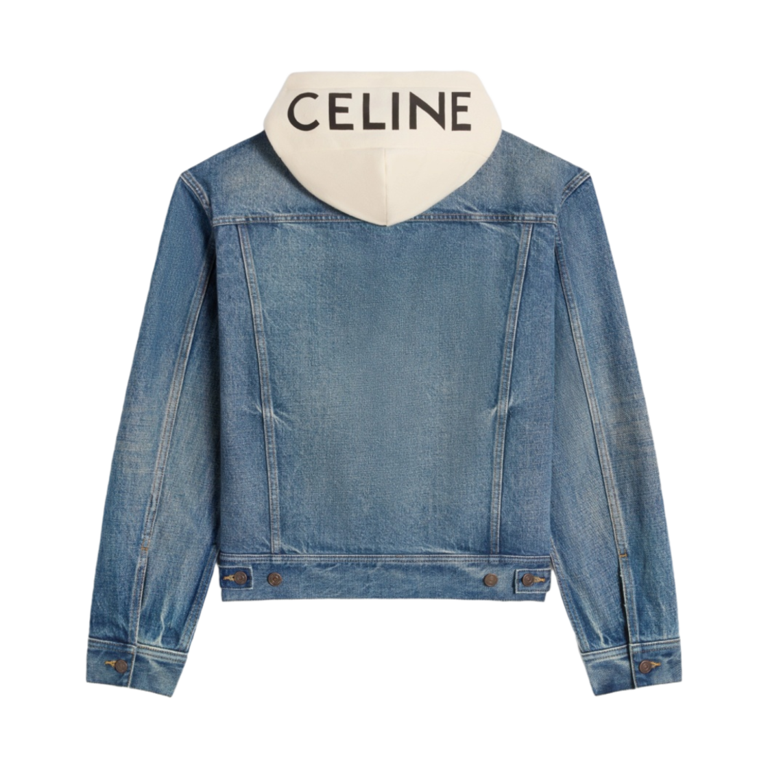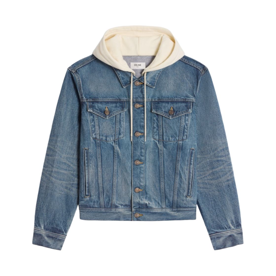 (W) Celine Trucker Jacket with Hood in Denim Union Wash