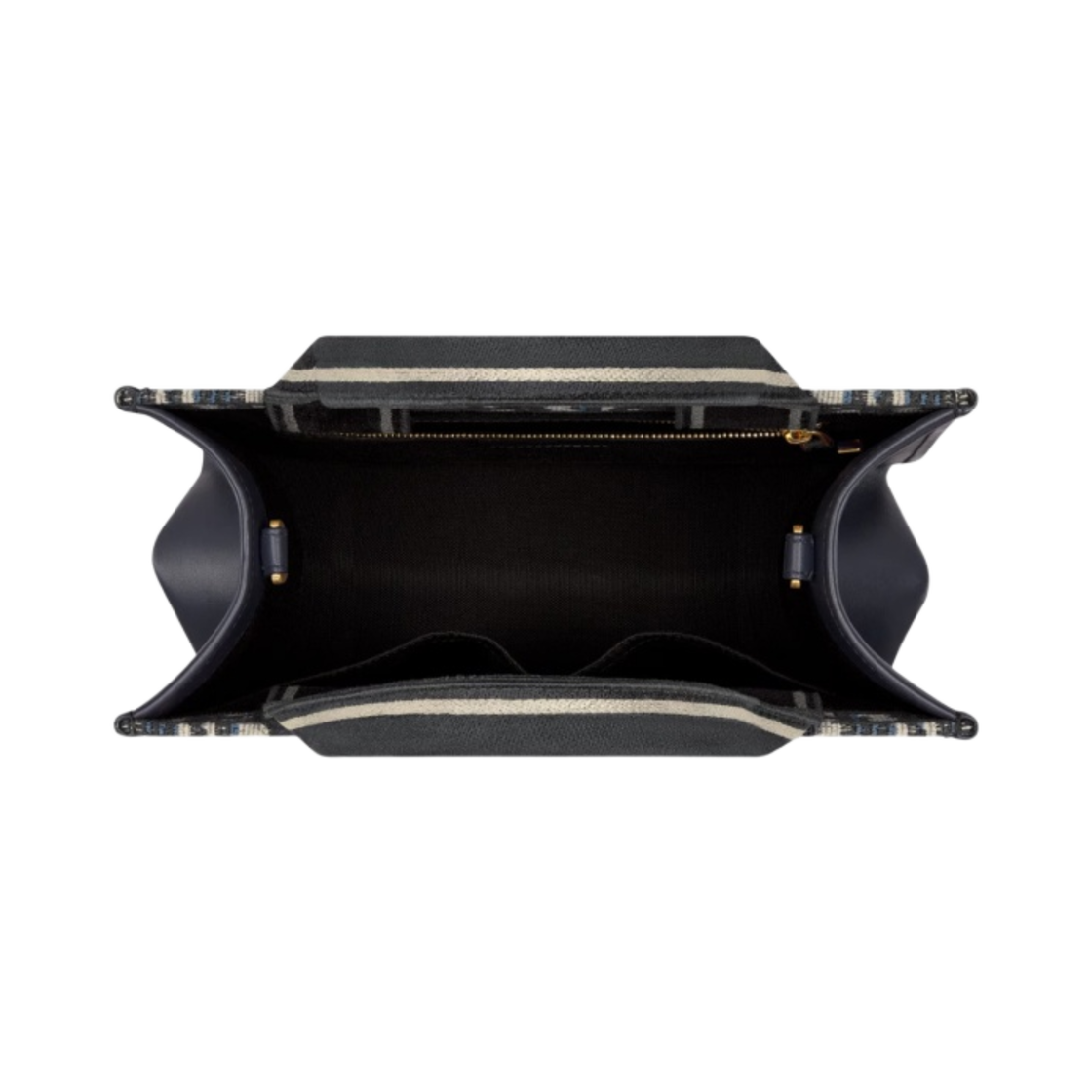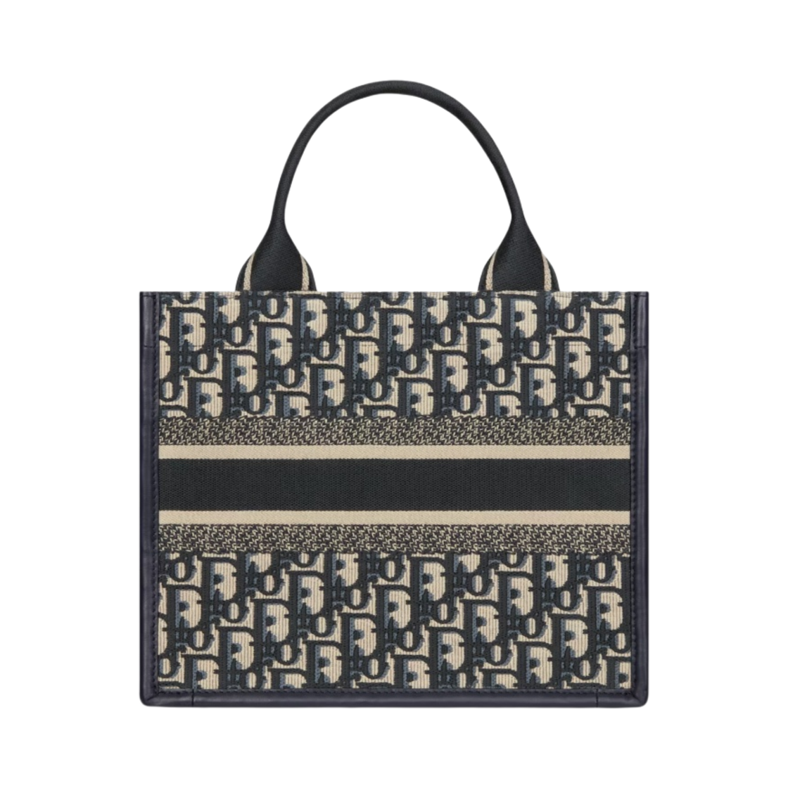Dior Small Book Tote Blue Dior Oblique Embroidery Calf Skin