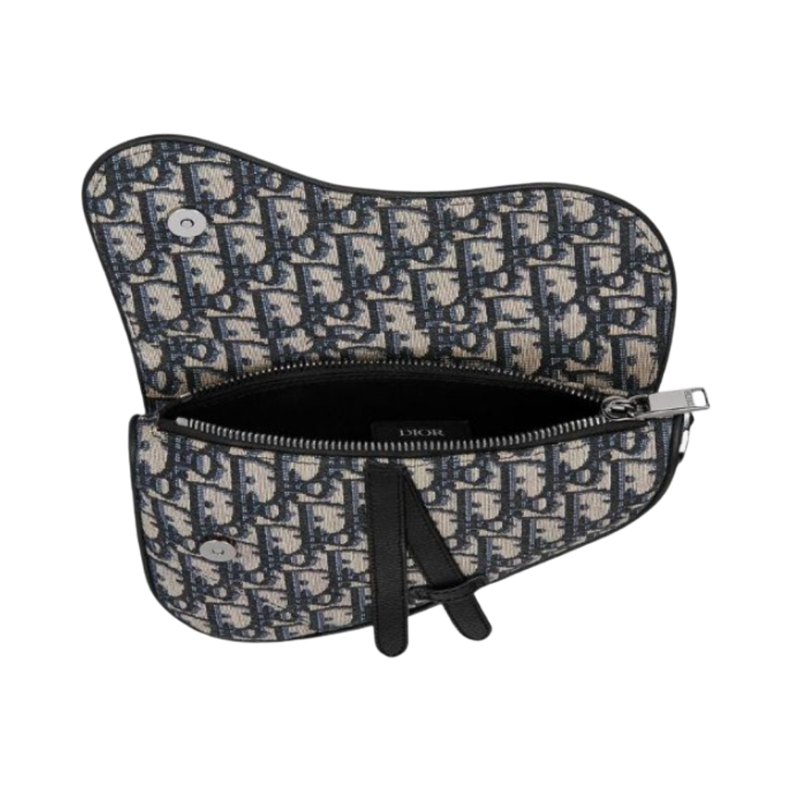 Dior Mini Saddle Bag with Strap Oblique Jacquard Beige Black