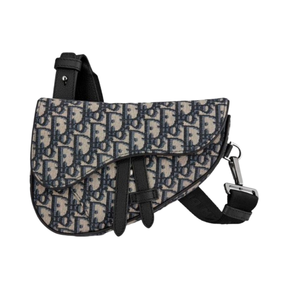 디올 미니 스트랩 새들백 오블리크 자카드 베이지 블랙